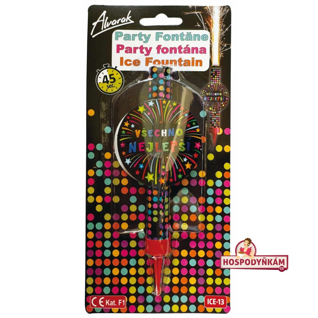 Dortová fontána Všechno nejlepší je ideální volbou, pokud chcete svou oslavu posunout na vyšší úroveň a vykouzlit úsměv na tváři oslavence i všech hostů. Její použití je velmi snadné – stačí ji zapíchnout do dortu, zapálit a ustoupit do bezpečné vzdálenosti. Během 45 sekund vytvoří malý ohňostroj, který ozdobí každý slavnostní stůl a přinese radost dětem i dospělým. Díky tomu, že fontána produkuje jen minimum kouře, je vhodná i do interiéru a nezpůsobí nepříjemnosti.
