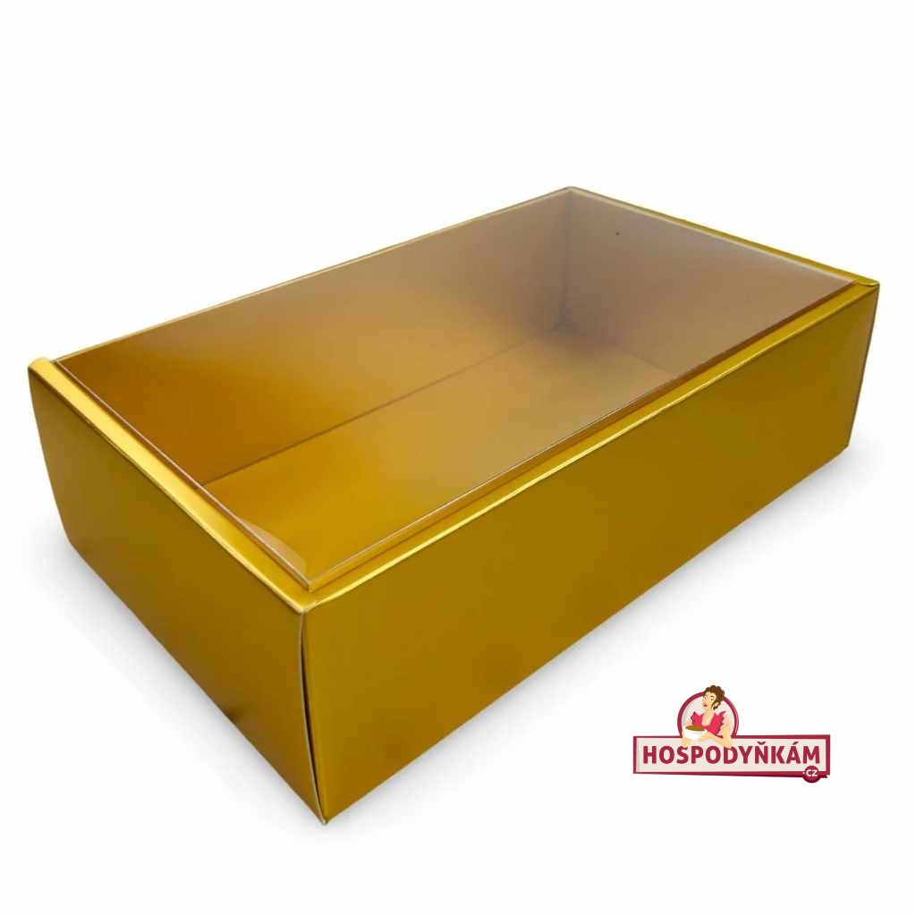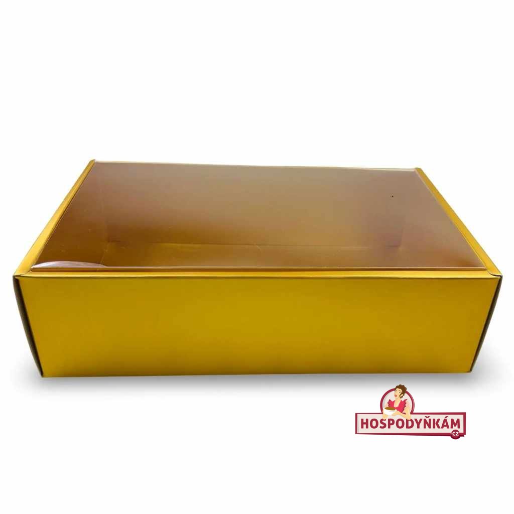 Alvarak Krabice na cukroví Zlatá s průhledným víkem