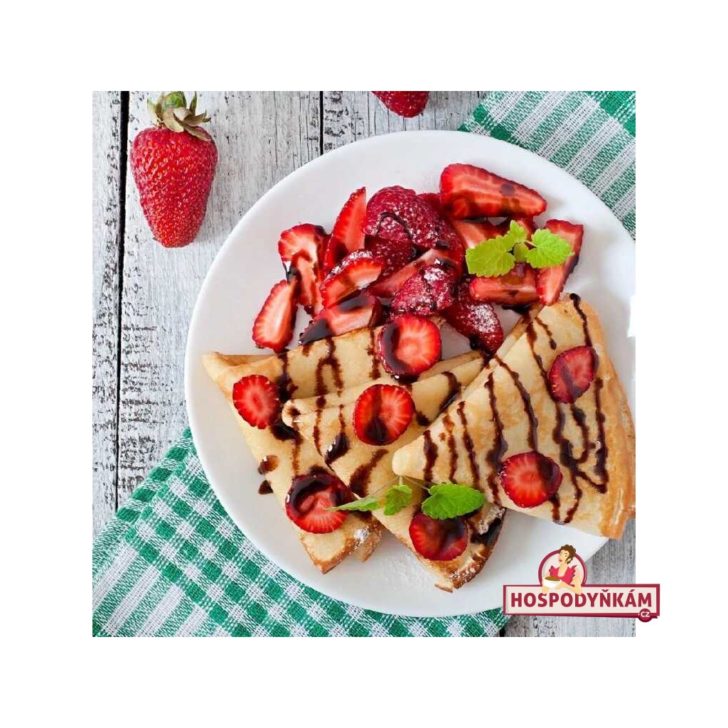 - Na vyhřáté pánvi potřené olejem smažíme tenké palačinky.