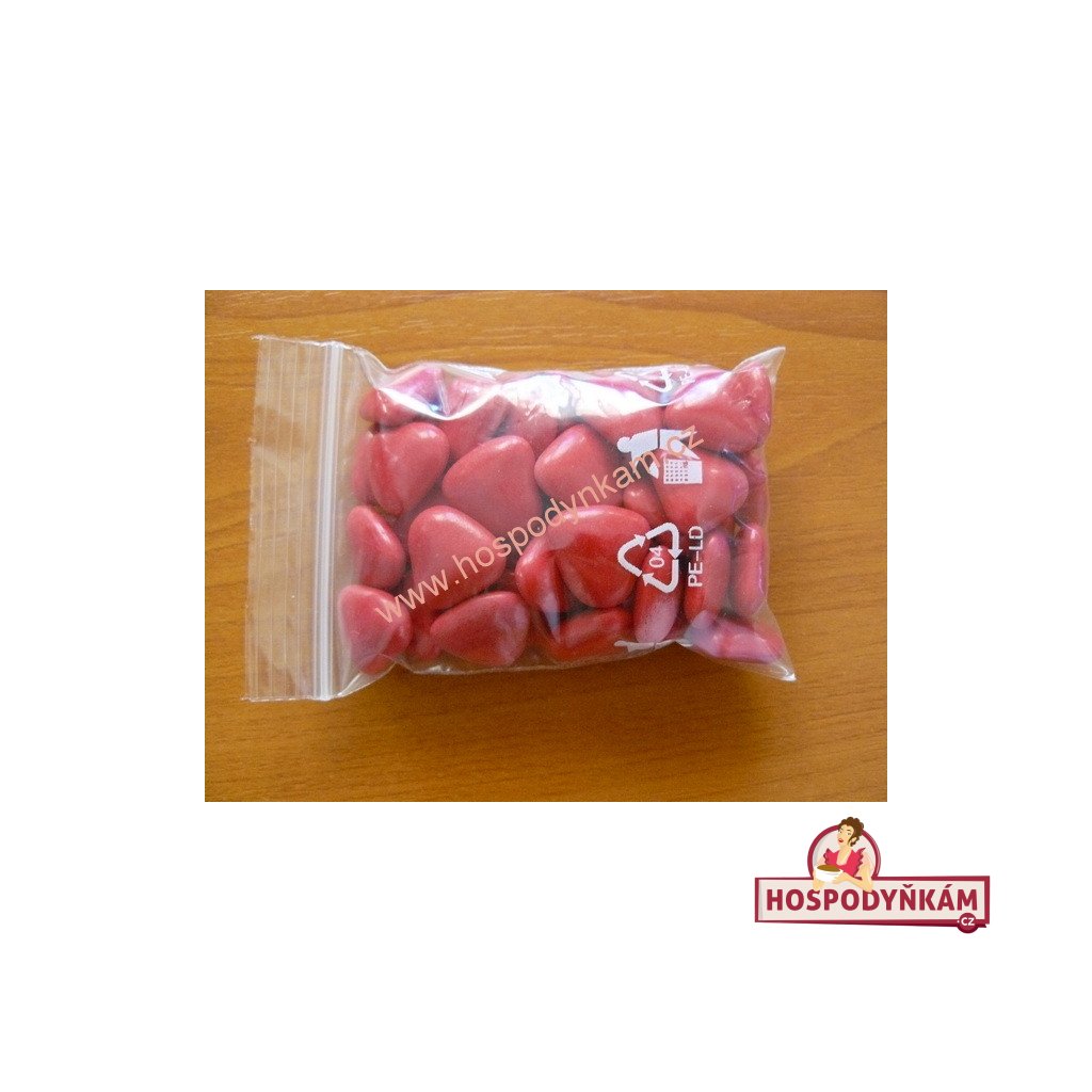 hořká čokoláda (cukr, kakaová pasta, kakaové máslo, emulgátor - slunečnicový lecitin, vanilin), cukr, rýžový škrob, emulgátor arabská guma, maltodextrin, složení povrchu: leštítí látka karnaubský vosk E903, barvivo (E171, přírodní extrakt ze světlice barvířské, E120), aroma