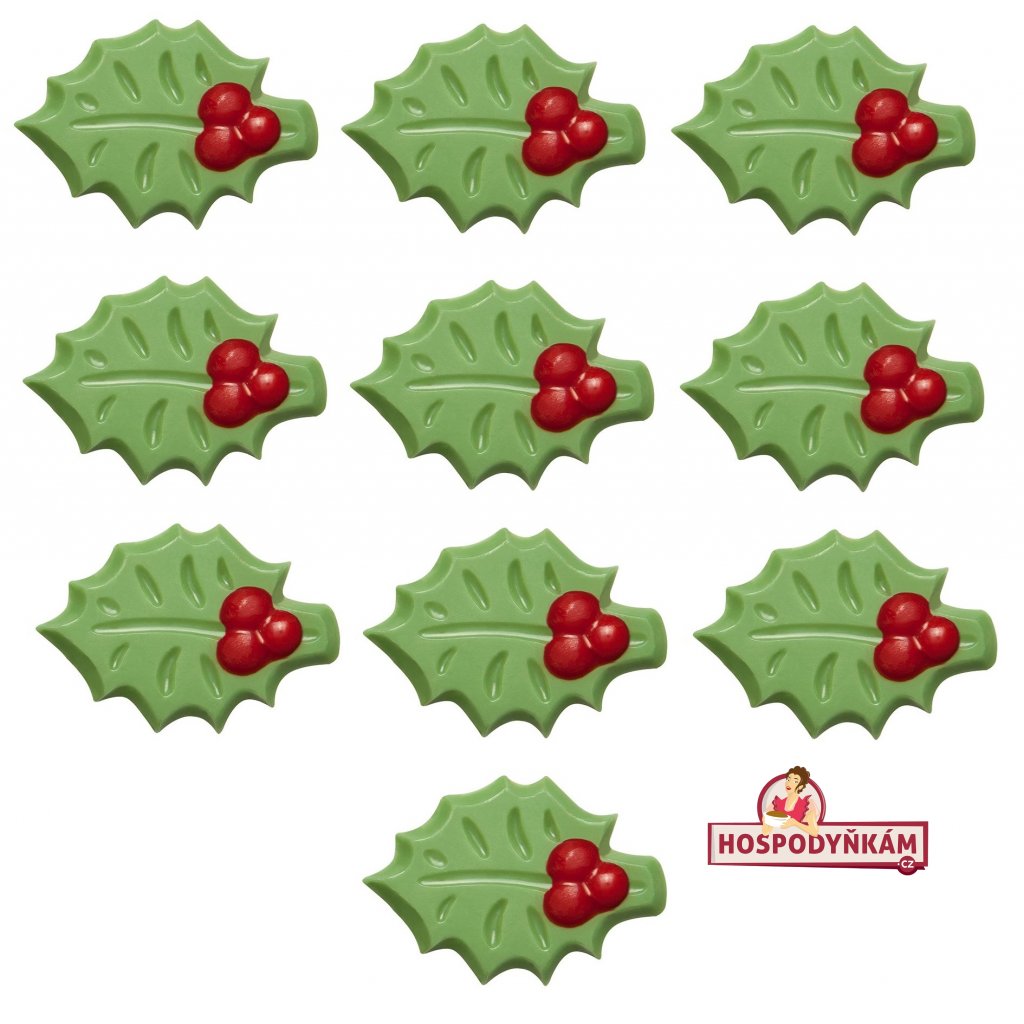 Čokoládová cesmína zelené barvy je vyrobena z jemné bílé čokolády a báječně doplní nejen vánoční cukroví, ale také všechny vánoční sladké pochutiny, jako jsou dorty, cupcakes, zákusky nebo dezerty.