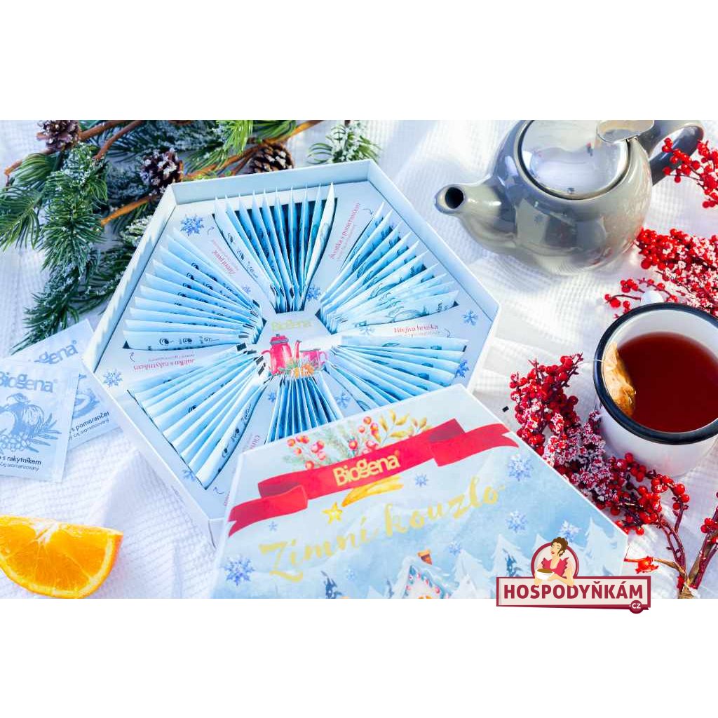 Zimní večery mají své jedinečné kouzlo - a právě to dokáže podtrhnout čajová kolekce Zimní kouzlo od značky BIOGENA. Tato elegantní dárková kazeta ukrývá šest pečlivě vybraných čajových směsí, které vás okouzlí rozmanitostí chutí i vůní. Najdete v ní například osvěžující kombinaci zázvoru s mandarinkou, hřejivý zimní punč, jemně sladkou hrušku či šťavnaté jablko s rakytníkem. Každý šálek navodí příjemnou atmosféru, zahřeje v chladných dnech a přinese kousek sváteční pohody do každodenních okamžiků. Kolekce je ideální nejen jako dárek pro milovníky čaje, ale i pro chvíle, kdy si chcete dopřát něco opravdu výjimečného.