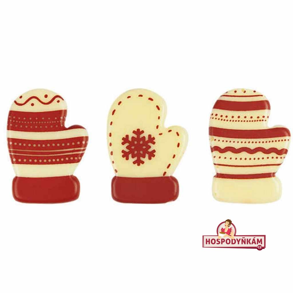 Pro finální zdobení cukrářských výrobků, především pak vánočního cukroví, je tu nevšední čokoládová dekorace v podobě zimních rukavic, palčáků.