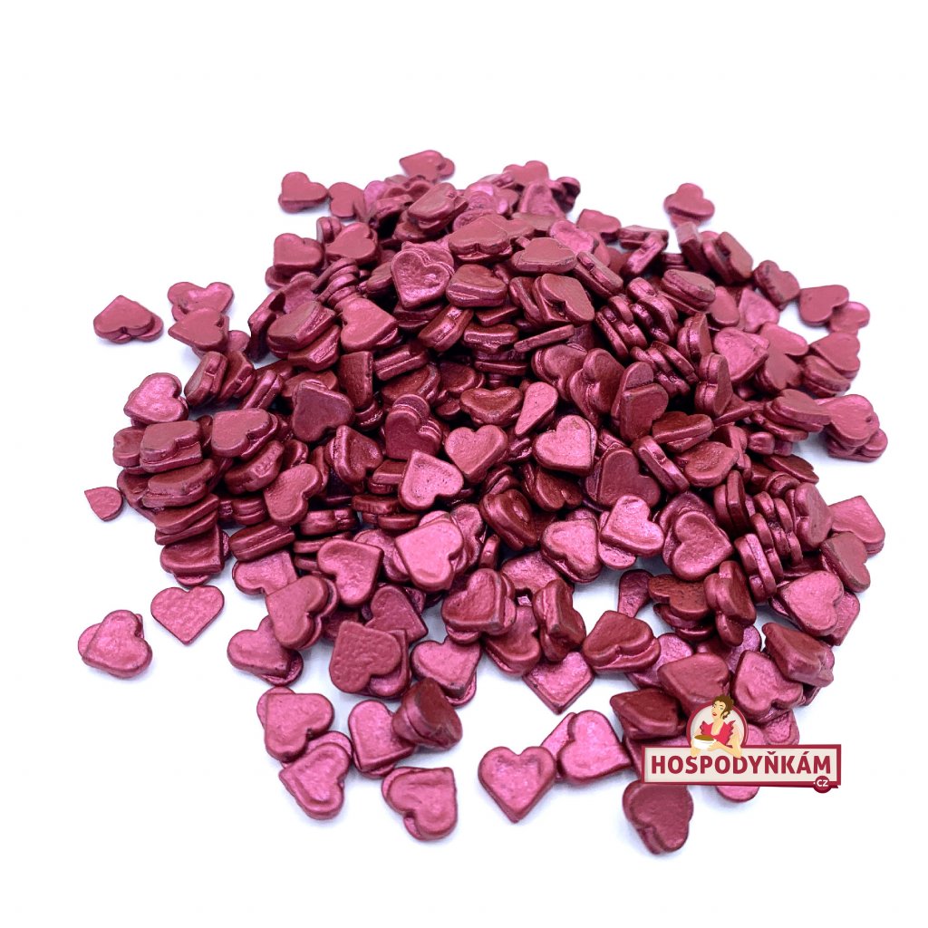 - tmavě červená srdíčka z hořké čokolády jsou vhodná pro zdobení všech cukrářských výrobků.