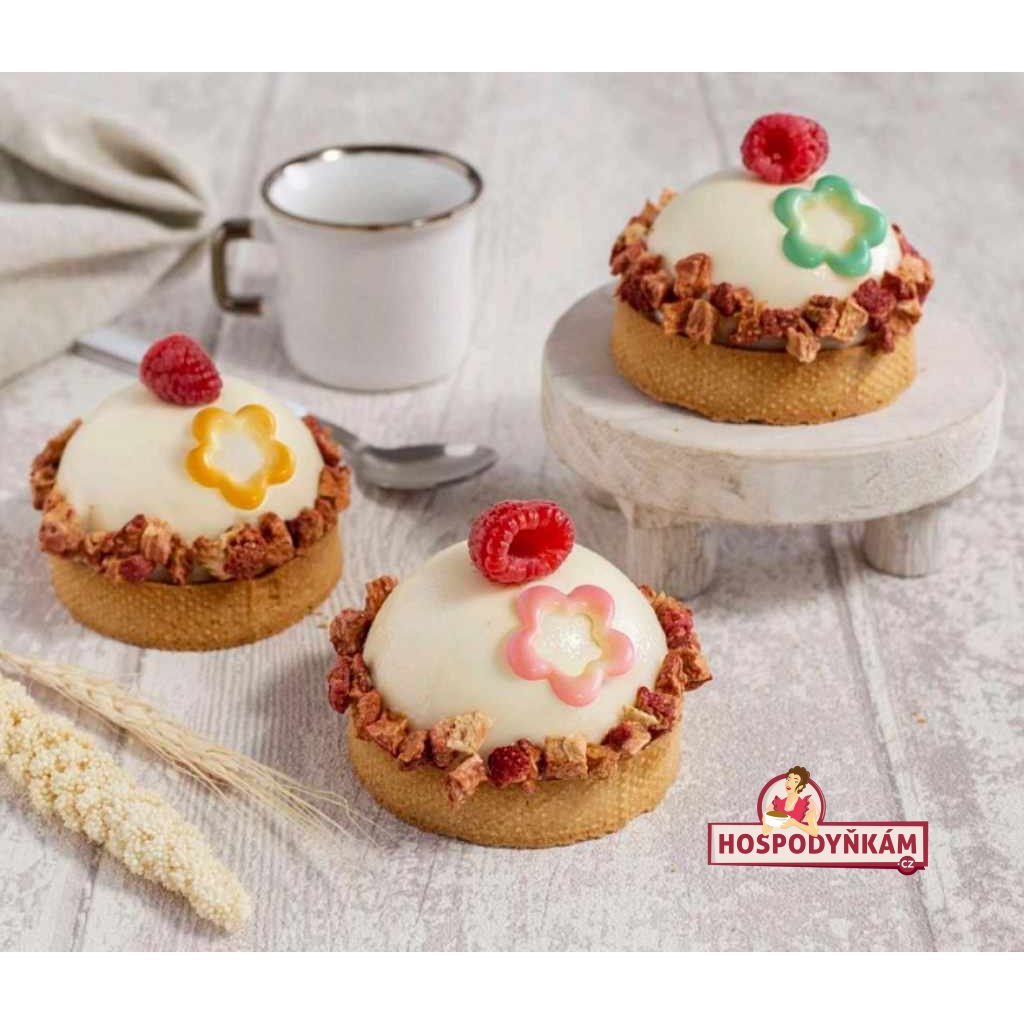 Jaro a léto jsou období plné barev a radosti, což se skvěle promítá i do cukrářských dekorací. Čokoládové kytičky obrysové jsou vyrobené z bílé čokolády a jejich jemné pastelové obrysy krásně ozdobí každý dort, zákusek nebo zmrzlinový pohár. Díky neutrální chuti bílé čokolády se hodí ke všem druhům krémů i ovocným dezertům a promění každý sladký výtvor v oku lahodící jarní nebo letní potěšení.