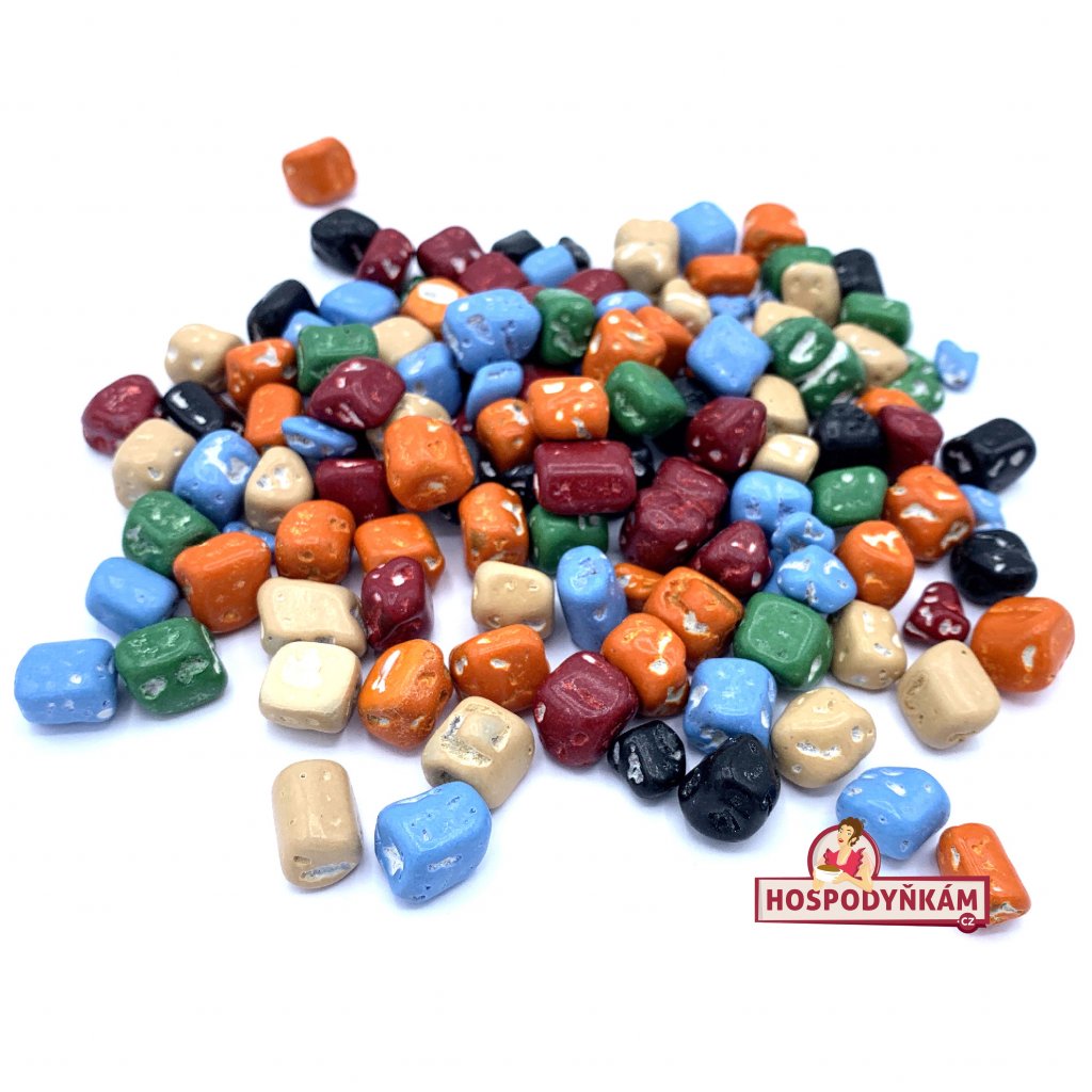 Velikost oblázků: cca 1 cm (v balení je mix nepatrně rozlišných velikostí a barev)