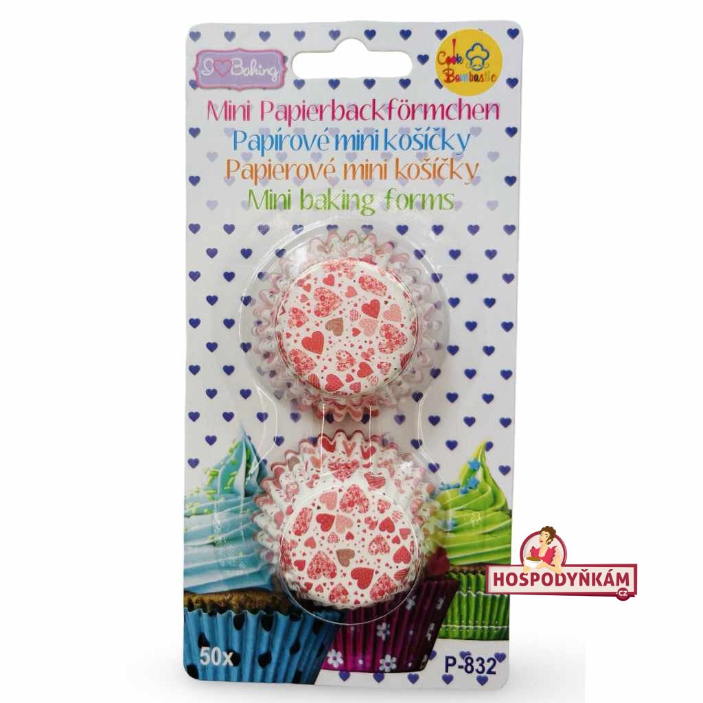 Balení obsahuje: 50 kusů košíčků s romantickým motivem srdíček tištěných na bílém podkladu.