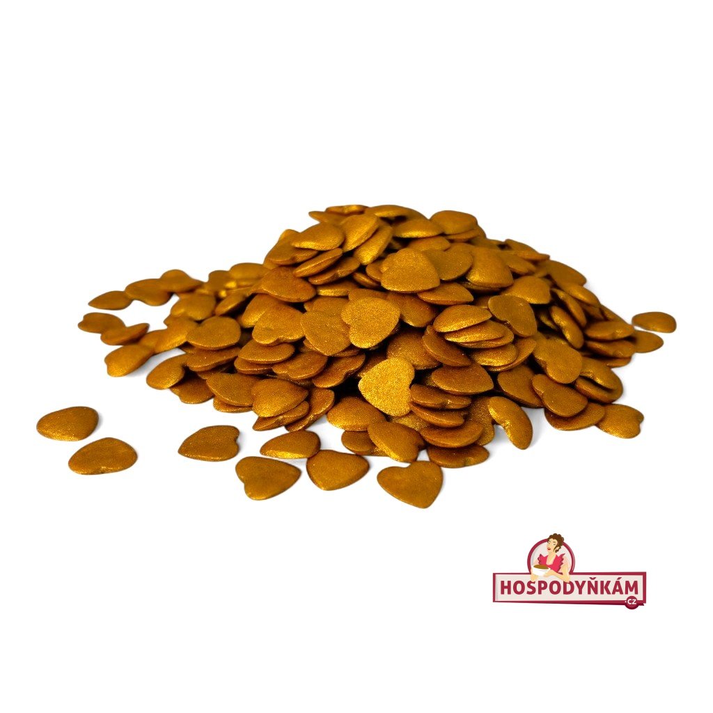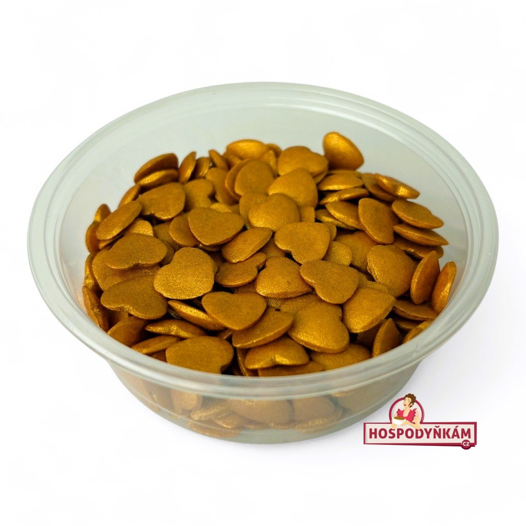 Luxusní cukrová srdíčka v perleťově zlatém provedení dodají vašim dortům, cupcakům i dezertům nádech elegance a slavnostní atmosféry. Každé srdíčko má průměr 8 mm a v balení najdete přibližně 250 kusů, což vystačí na bohaté zdobení pro různé příležitosti – od svateb až po narozeninové oslavy.