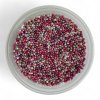 Cukrový máček Růžový mix je perfektní volbou pro všechny cukrářské výrobky. Kombinace perleťově bílé, světle růžové, tmavě růžové, světle fialové, tmavě fialové a stříbrné vytváří harmonický a vkusný vzhled, který ozdobí každý dort, cupcake, zákusek nebo sušenku. Perleťové perličky o průměru 1,5 mm jemně křupou a snadno přilnou k polevám i krémům. Díky pestrým barvám dodají vašim sladkostem elegantní a slavnostní vzhled.