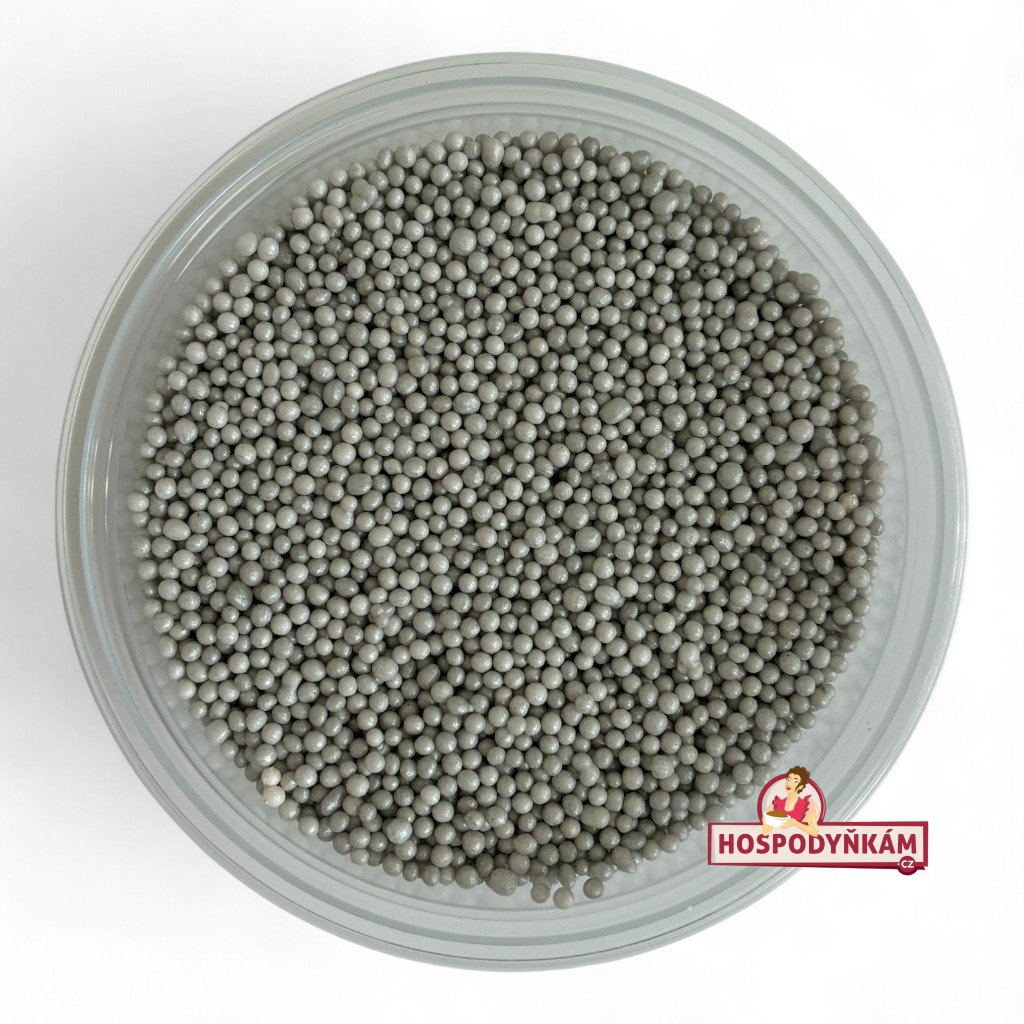 Mini cukrové sypání ve stříbrné perleťové barvě je ideální pro zdobení vánočního cukroví, zákusků, dortů i zmrzlinových pohárů. Jedná se o velmi jemný, droboučký máček o průměru cca 1,5 mm, který dodá vašim sladkostem luxusní a slavnostní vzhled.