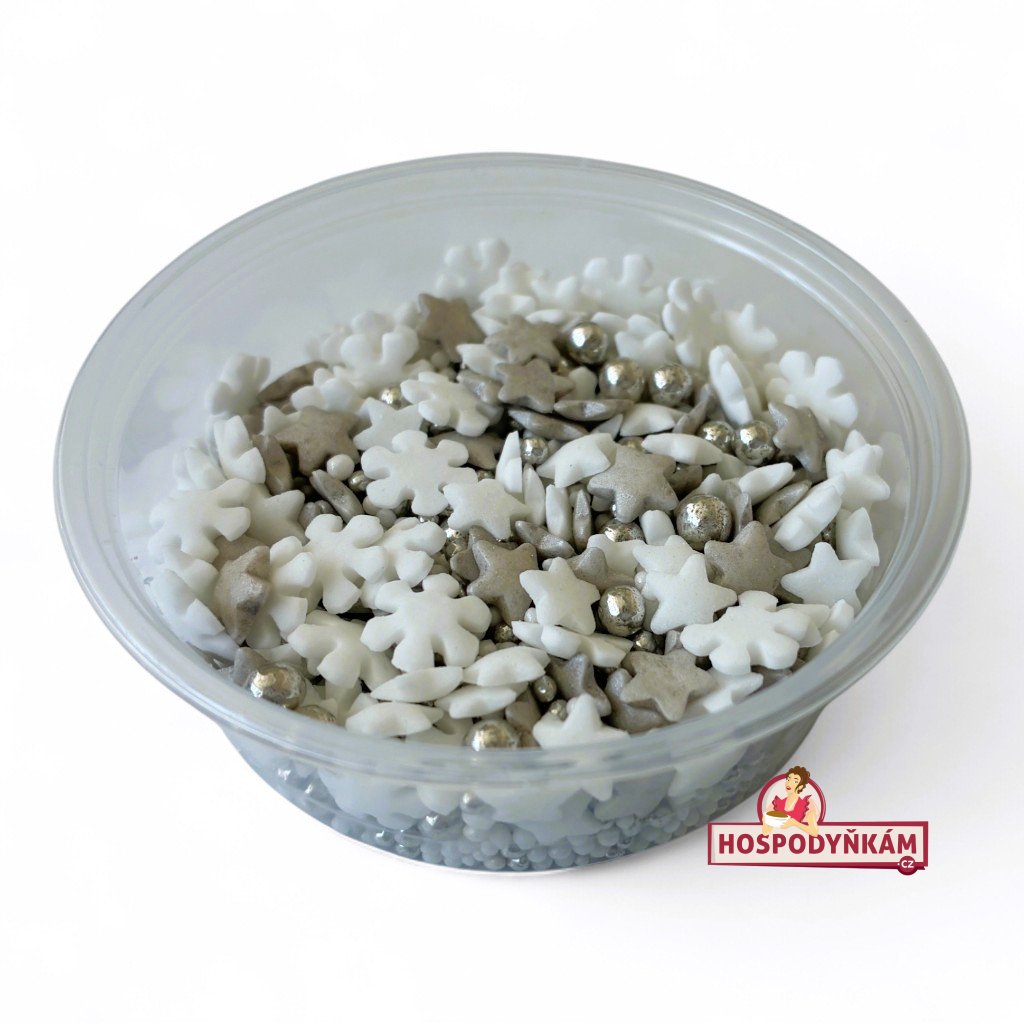 - Mix bílých sněhových vloček, stříbrných a bílých hvězdiček