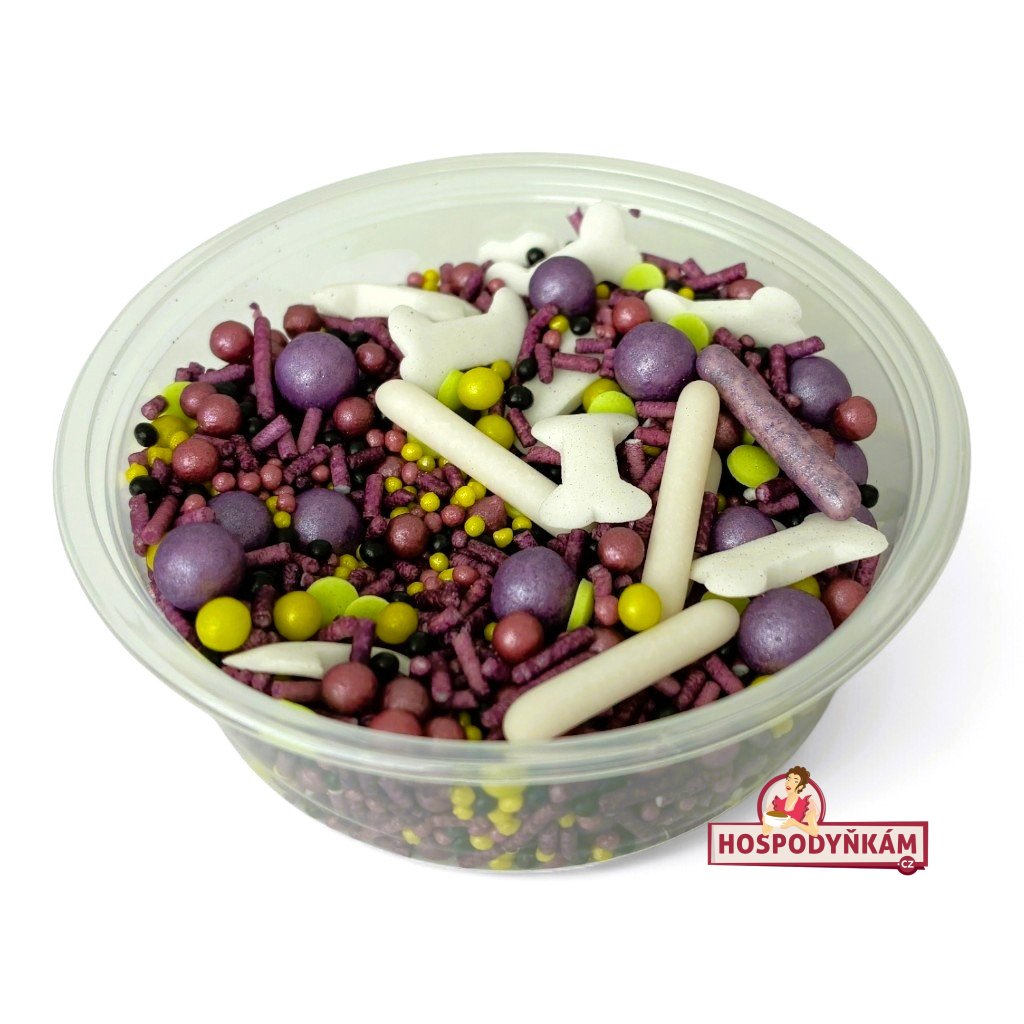 - Mix máčku, perliček, rýže, tyčinek, konfet a cukrových bílých kostí
