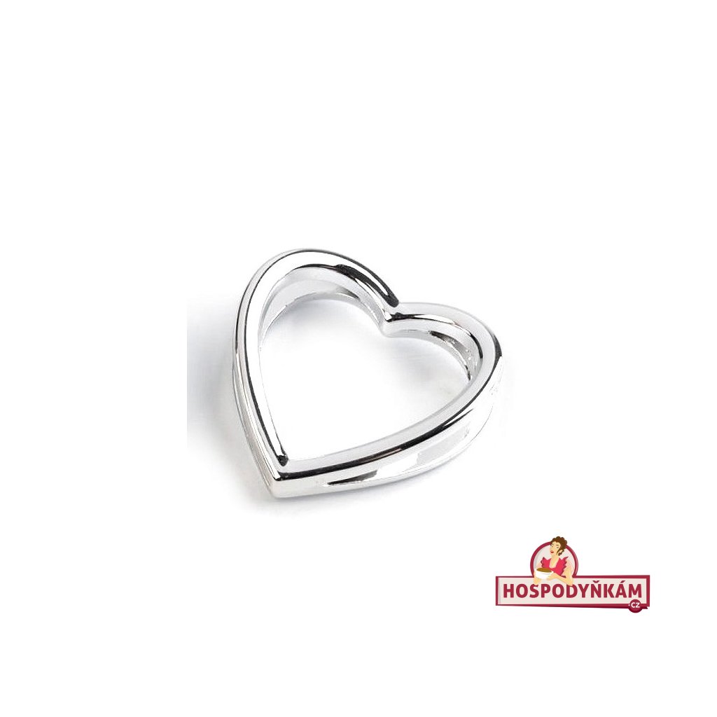 Nejedlá dekorace ve tvaru stříbrného hladkého srdce je vhodná jako dekorace stuhy.