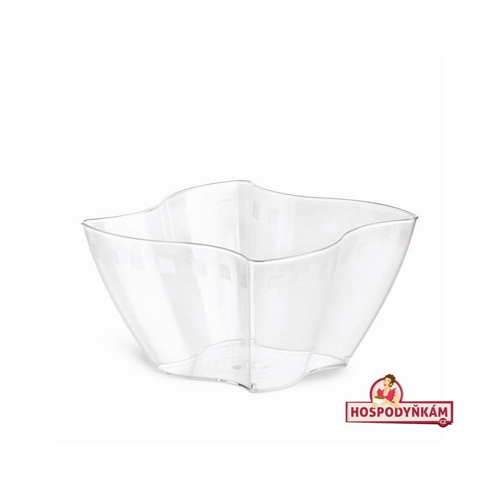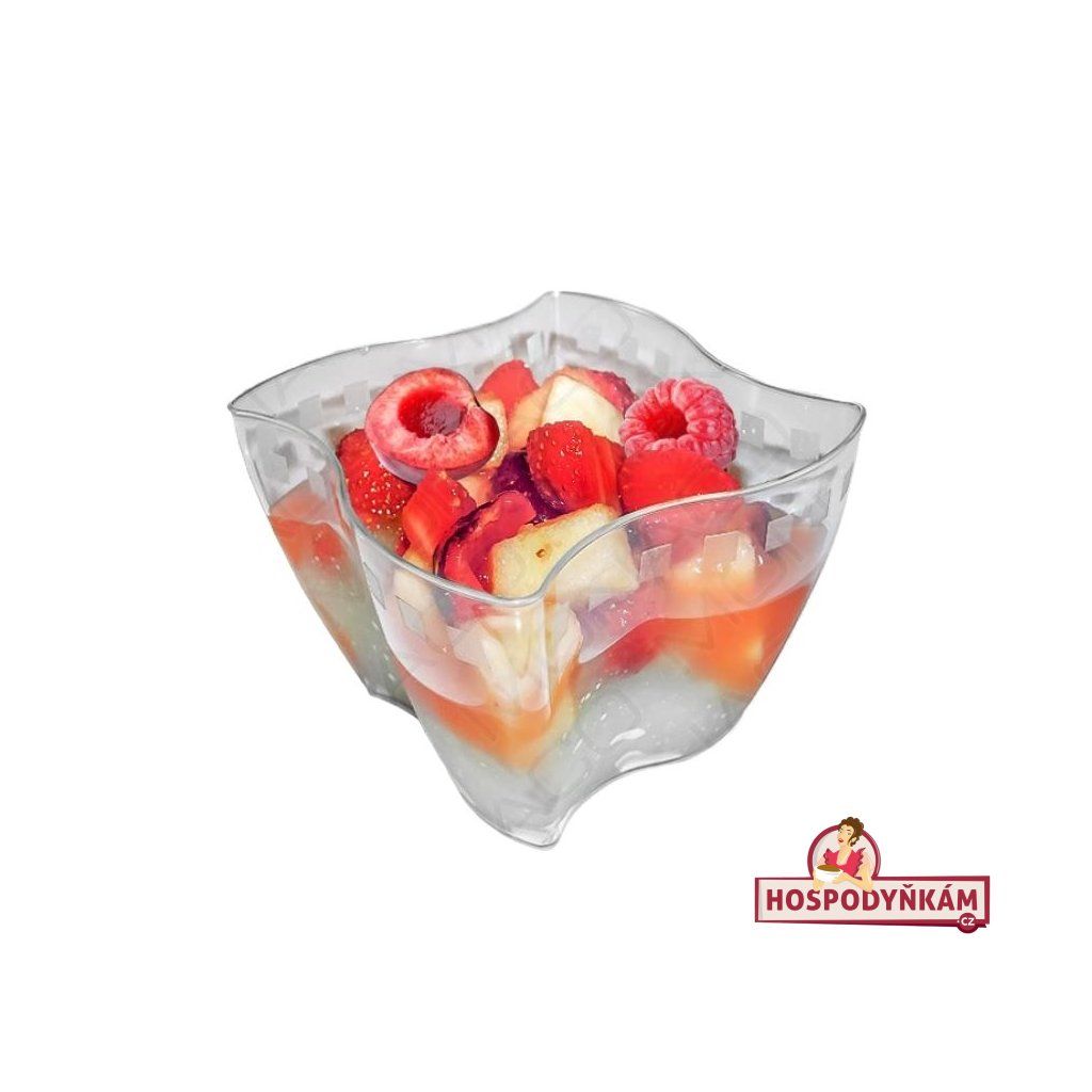 Jednorázový plastový kelímek na dezerty je vyroben v ozdobném tvaru připomínající větrník. Průhledný kelímek je dostatečně velký na prezentaci panna cotty, pudingů, ovocných nebo zmrzlinových pohárů. Rozměry kelímku 8,5 x 8,5 x 5,5 cm a objem 250 ml umožní servírovat větší dezerty. Díky čirému provedení je také efektivní pro vrstvení.
