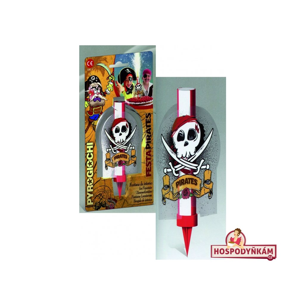 Domácí dortová fontána s pirátským motivem lebky je určena pro chlapce.