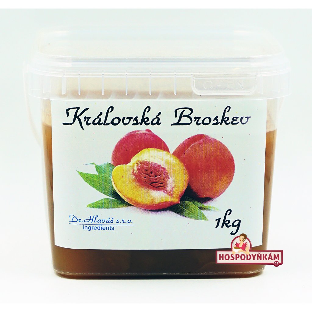 Představujeme džem královská broskev, vrcholný výtvor moravského cukrářského umění, který přináší nejen vynikající chuť, ale i nevídanou praktičnost a univerzálnost použití. S obsahem 1kg této lahodné broskvové náplně si můžete dopřát luxusní chuť plnou ovocných kousků a to vše bez obav z vytékání při pečení či problémů při mrazení.