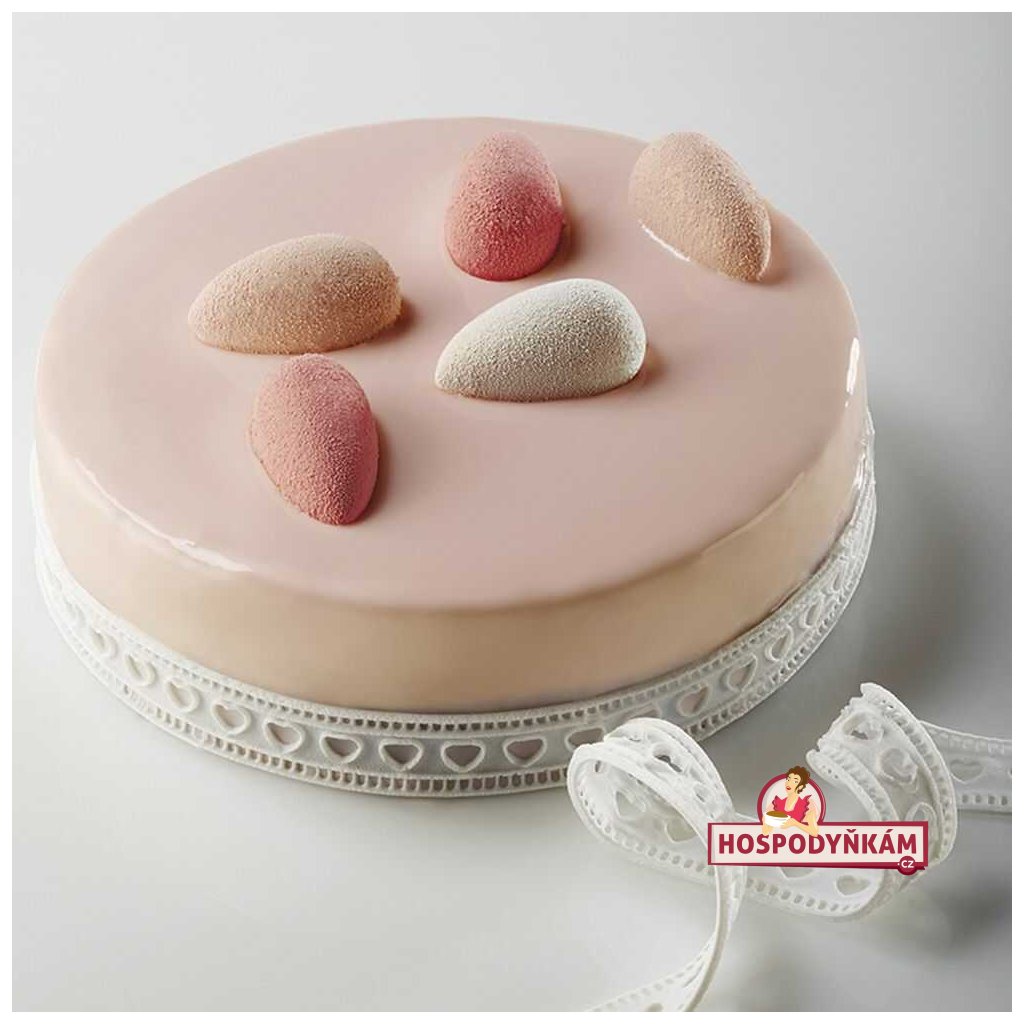 Praktická reliéfní forma na přípravu jedlé krajky je vytvořena ve 3 pruzích s motivy srdcí, hvězd a oválků. Univerzální použití pro každou slavnostní příležitost. Ozdobte si dorty a zákusky efektivní krajkovou ozdobou.