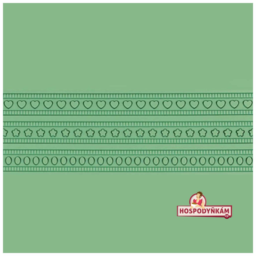 Silikonová forma na přípravu jedlé krajky s pásky obsahující jednotlivé motivy: srdce, hvězdičky, oválky. Zvolit si tak můžeme právě tu pásku, kterou potřebujeme.