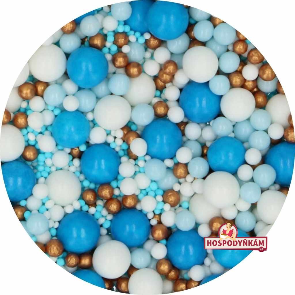 - Směs perel v tmavě modrých, světle modrých, zlatých a bílých tónech