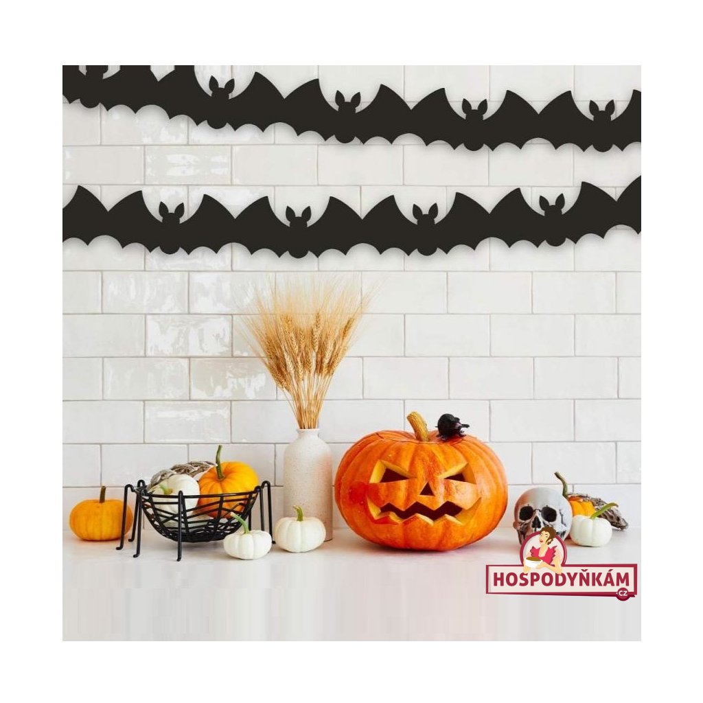 Každý netopýr má rozměr 25 x 10 cm, což z nich činí výraznou a působivou dekoraci. Girlanda je vyrobena z kvalitního papíru, takže je lehká, ale přesto odolná a snadno se instaluje.