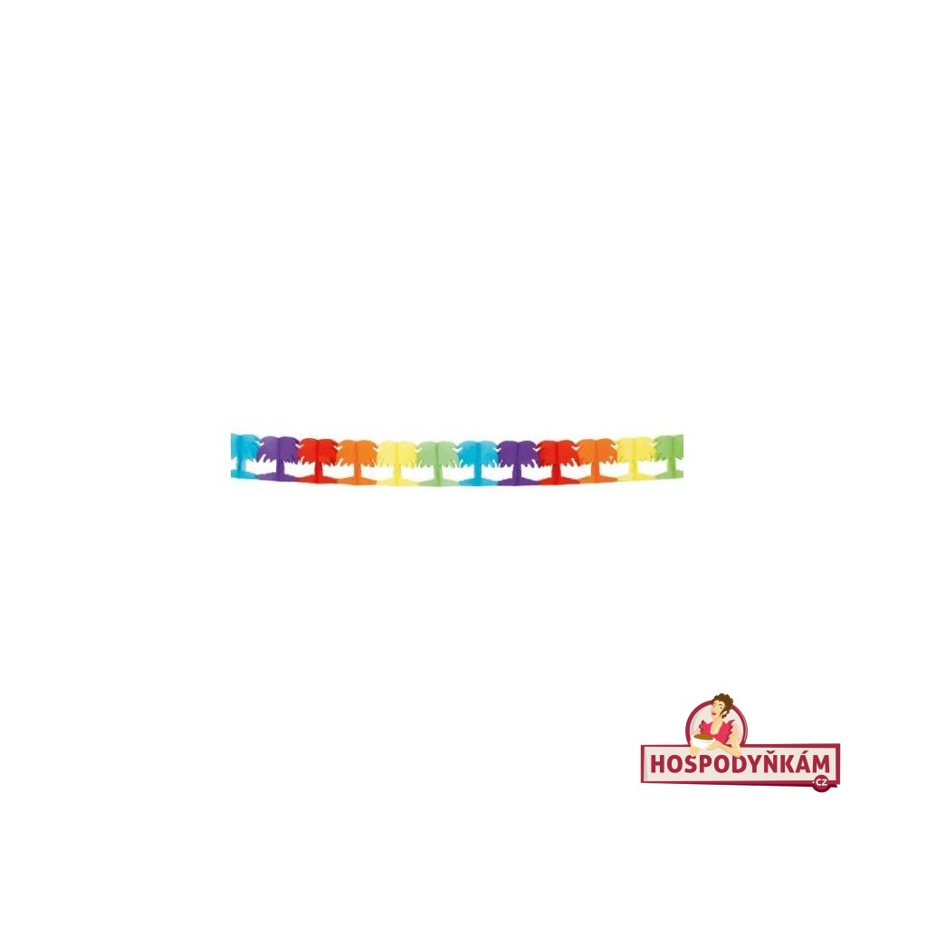Pestrobarevná papírová girlanda ve tvaru palem je určena k vyzdobení místnosti při oslavách.
