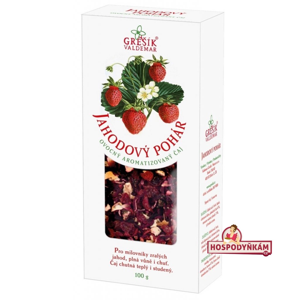 Objevte chuť léta s každým šálkem ovocného čaje Jahodový pohár. Pro milovníky zralých jahod přináší tento čaj nejen plnou vůni, ale i autentickou chuť čerstvých jahod. Ať už si ho vychutnáte teplý na začátku chladného dne nebo osvěžující studený pro potěšení ve hřejivém slunci, Jahodový pohár je dokonalým doprovodem pro každý okamžik.