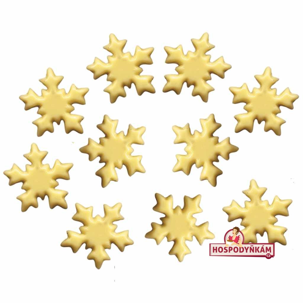 Do detailu propracovaná vánoční dekorace v podobě bílých sněhových vloček je vhodná pro dozdobení vánočního cukroví, dortů a zákusků s vánoční tématikou.