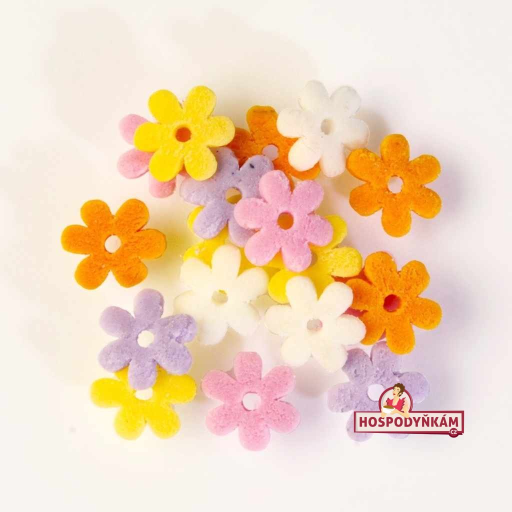- Balení obsahuje: cca 175 ks kvítků v mixu barev (bílá, žlutá, oranžová, růžová, fialová), každý s dírkou uprostřed