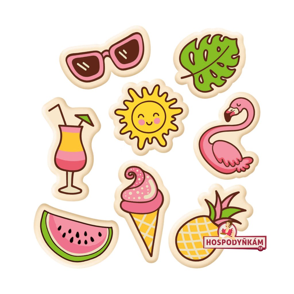 Veselá čokoládová dekorace ve tvaru plážových nezbytností dodá vašim dortům, cupcakes a dezertům svěží letní nádech a hravý vzhled. V balení najdete 8 různých motivů: slunce, sluneční brýle, plátek melounu, točenou zmrzlinu, list, pelikána, ananas a koktejl. Každá dekorace má rozměr cca 3 × 2,9 cm. Tyto dekorace jsou ideální pro letní, plážové či dovolenkové oslavy, dětské party nebo tématické svatby.