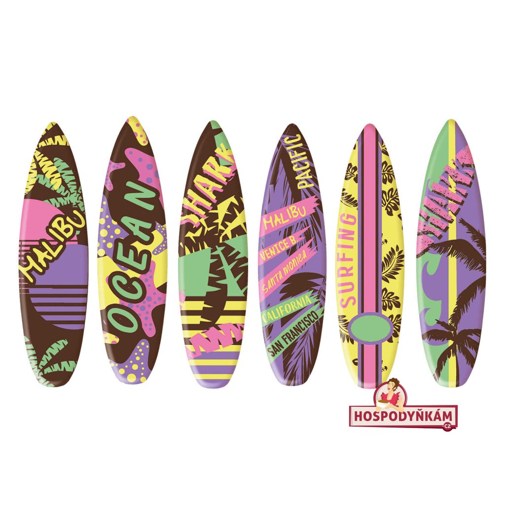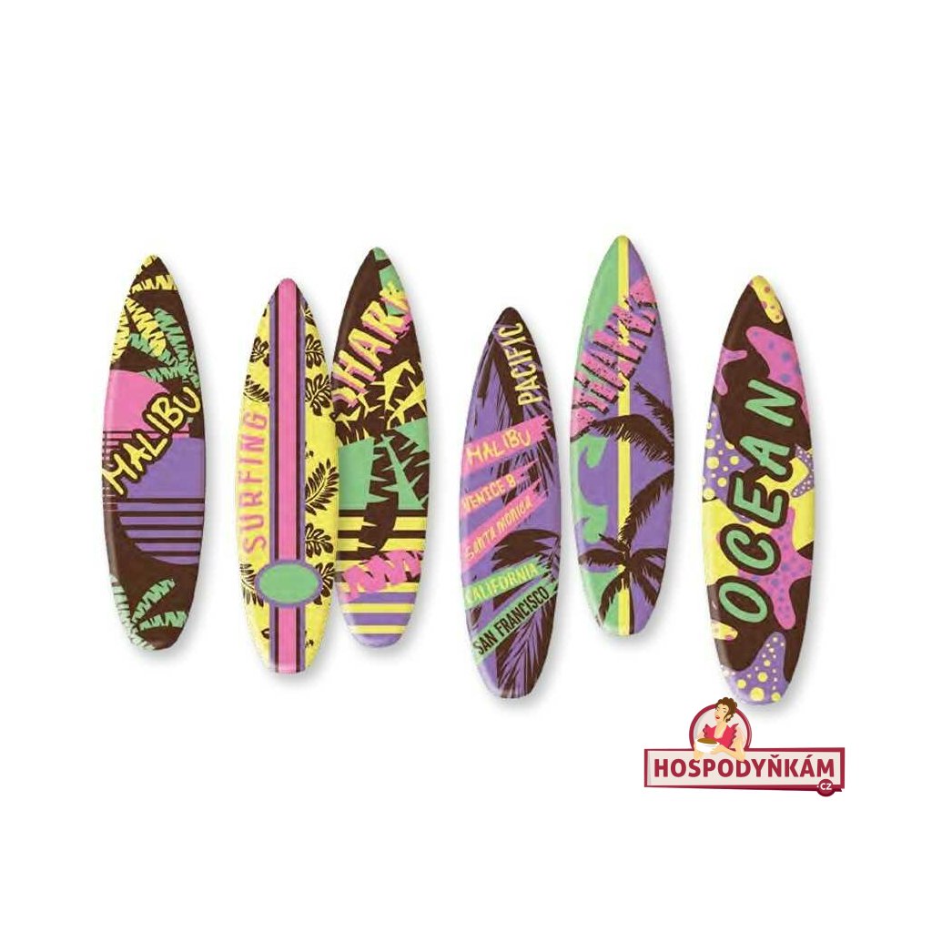 Originální čokoládová dekorace ve tvaru surfařského prkna je ideální pro zdobení dortů, cupcakes a dalších cukrářských výrobků s letní nebo sportovní tématikou. V balení najdete 6 různých motivů surfovacích prken, které dodají vašim dezertům hravý a moderní vzhled. Každé prkno má rozměr 6,8 × 1,7 cm, což jej činí výraznou a dominantní ozdobou.