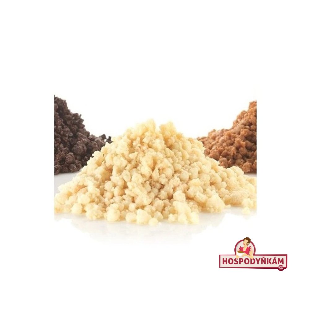 Sladká drobenka s kokosovou příchutí má podobu jemně vlhkých granulek. Aplikuje se na povrch výrobků nebo se zapracuje do dortového krému, kterému dodá luxusní křupavost. K použití je také jako posyp dezertů, zmrzlinových pohárů, či mousse a jiných výrobků. Bezlepkový produkt.