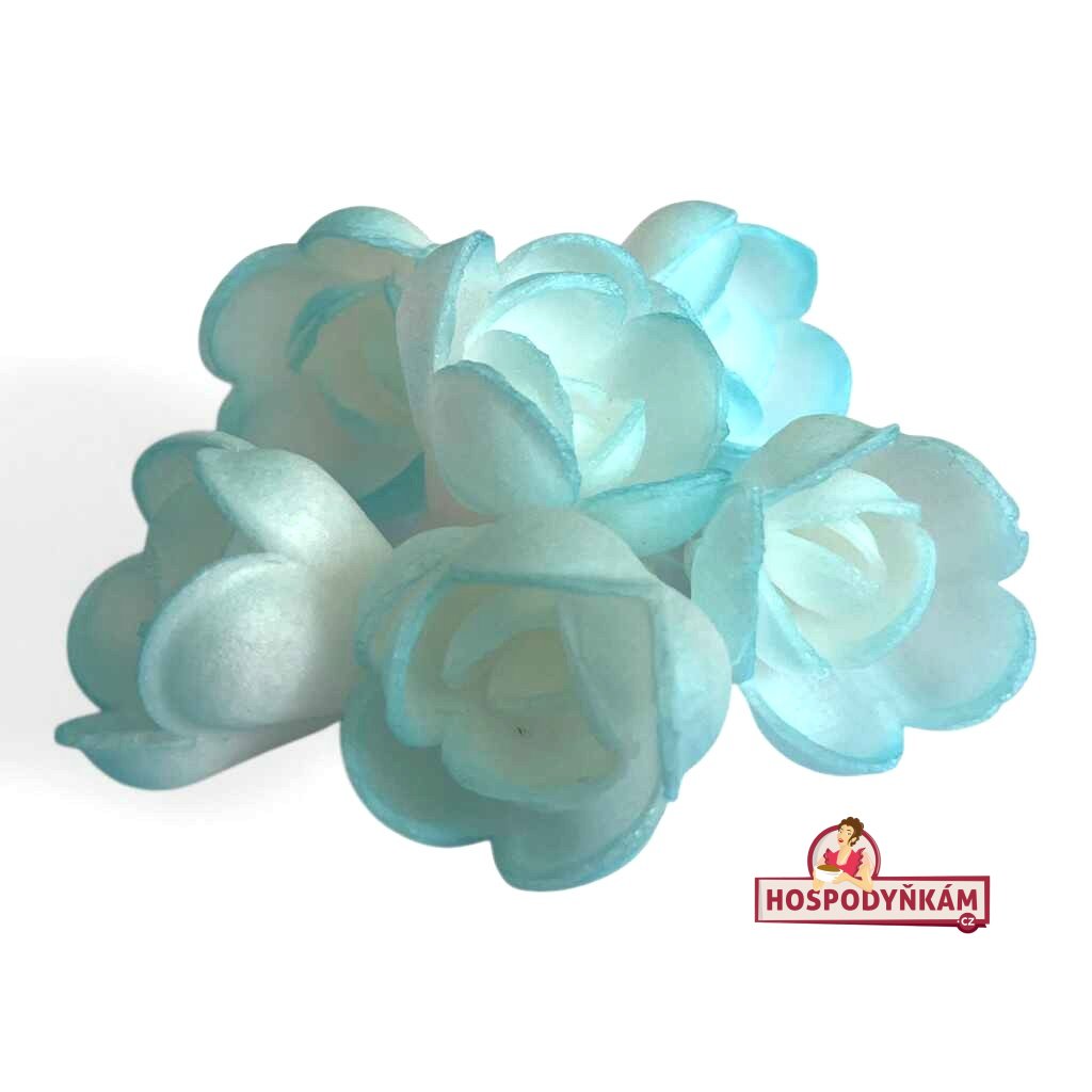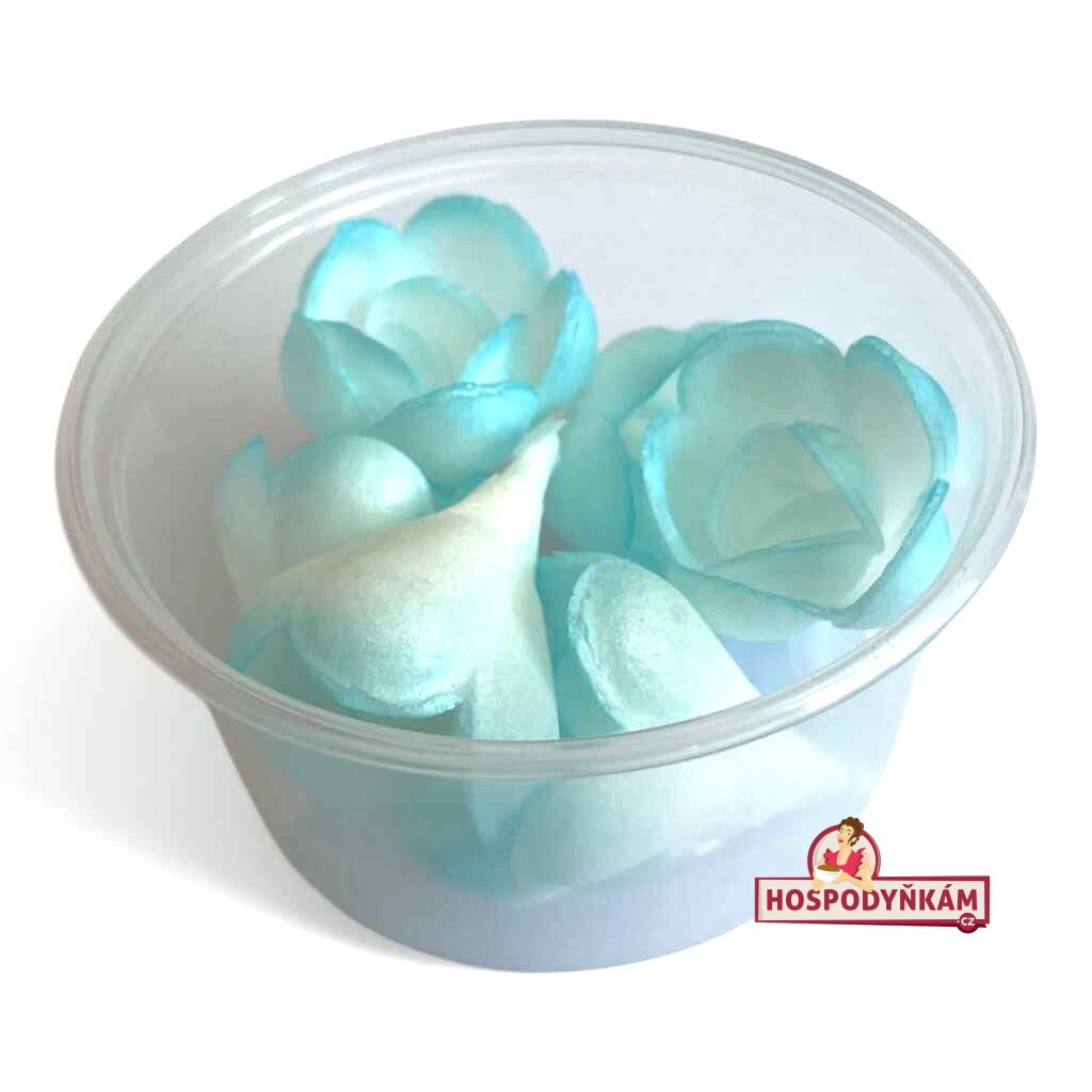 Každý květ je mistrovským kouskem, kde bílý základ splývá s něžně modrými okraji, čímž vytváří sofistikovaný a křehký design. Díky své autentické struktuře připomínají tyto jedlé dekorace živé květy tak dokonale, že málem nelze rozpoznat rozdíl.