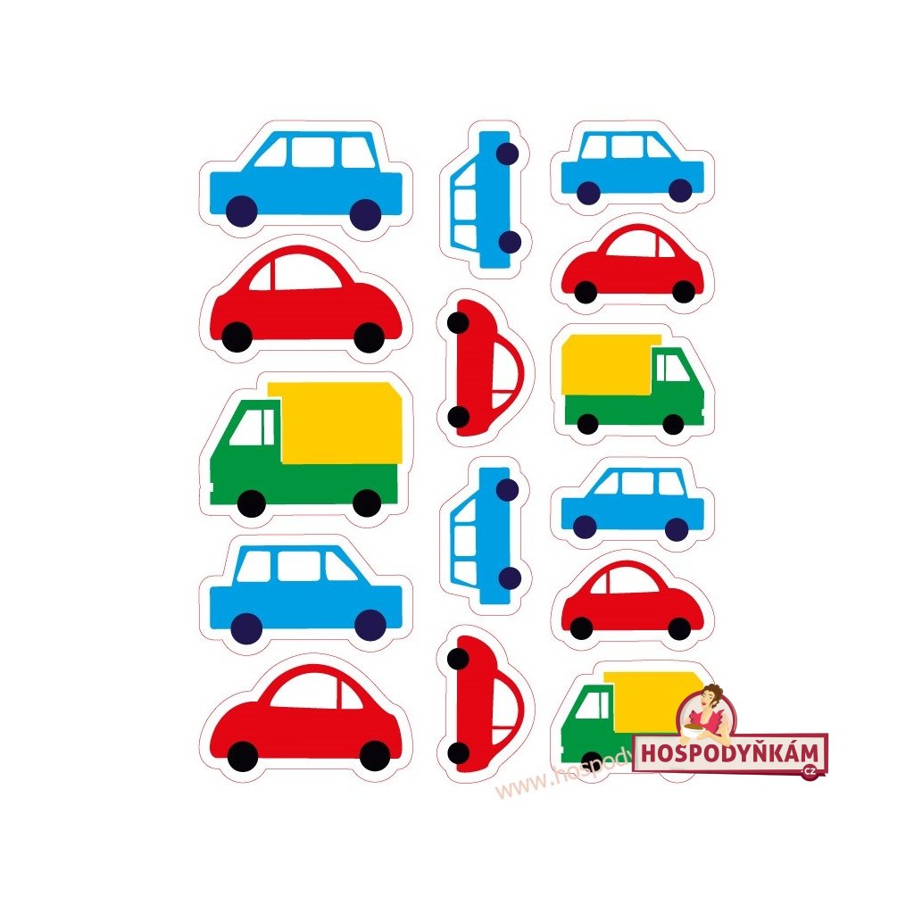 Jedlé mini obrázky na tenké oplatce s motivem osobních a nákladních aut. Jednotlivé motivy lze z kartičky jednoduše vyloupnout.