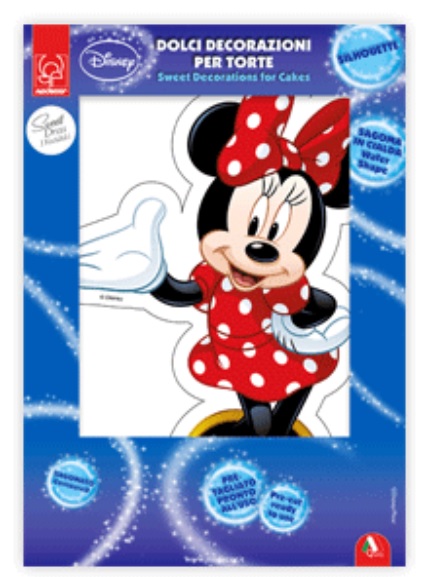 Jedlý papír na dort s motivem obrysu postavy myšky Minnie Mouse. Obrázek jednoduše vyloupneme z oplatky a zdobíme dort. Obrázkový návod je na obalu výrobku.