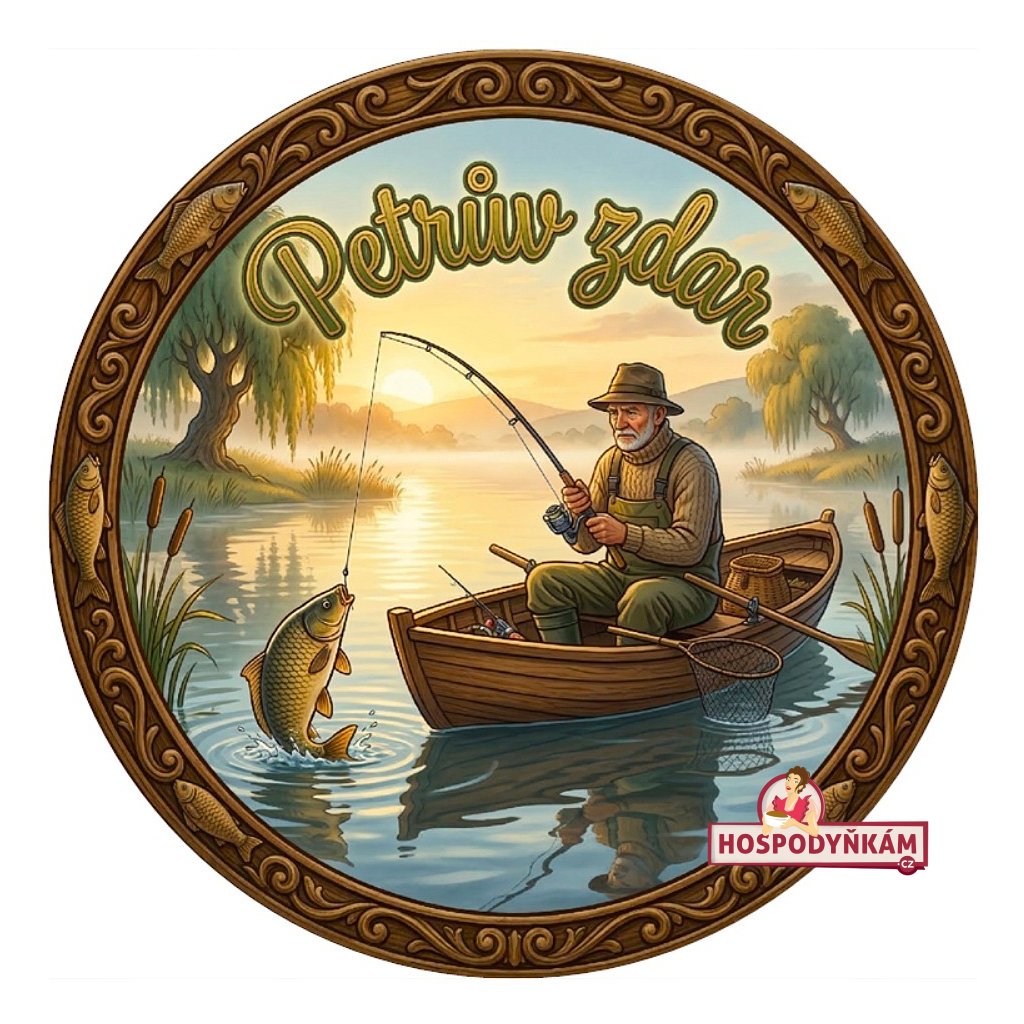 Kulatý jedlý obrázek s motivem rybáře sedícího na loďce a právě ulovenou rybou na prutu. Obrázek je ideální pro zdobení dortů s rybářskou tématikou – například na rybářský ples, narozeniny rybáře nebo jiné oslavy milovníků rybaření. Průměr obrázku je 20 cm, což je vhodné pro standardní kulaté dorty.