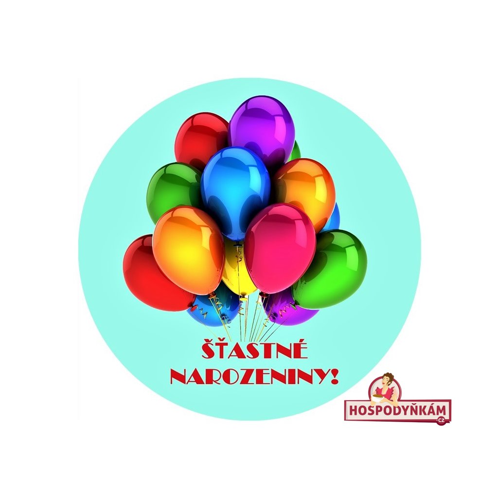 Motiv: nafukovaní balónky a nápis Šťastné narozeniny