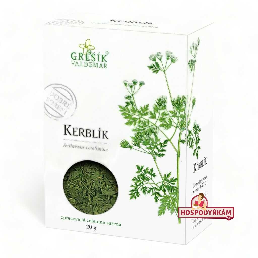 Kerblík je bylinka, která je součástí rodiny mrkvovitých. Má jemné, zelené listy a je známá svou jemnou, lehce anýzovou chutí. Je oblíbená v evropské kuchyni a je často používána pro svou svěží chuť a schopnost doplňovat různé druhy pokrmů.