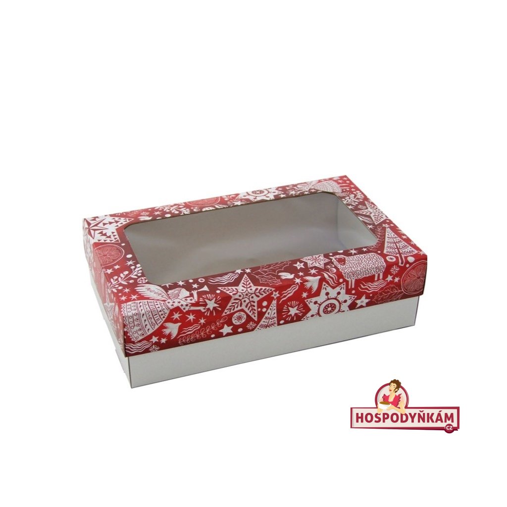 - Design: červená barva, průhledné okénko, jemné vánoční motivy