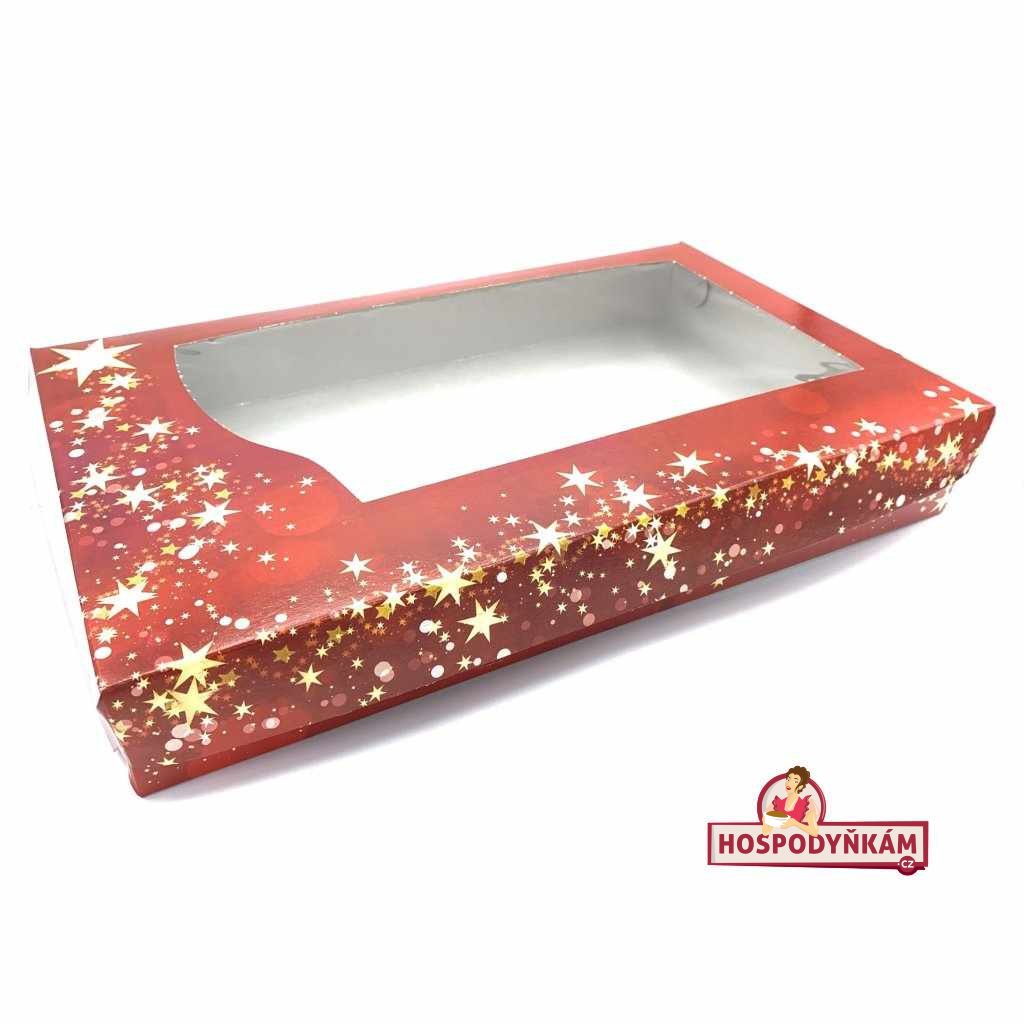 - Ozdobná krabice s vánočním potiskem na červeném podkladu