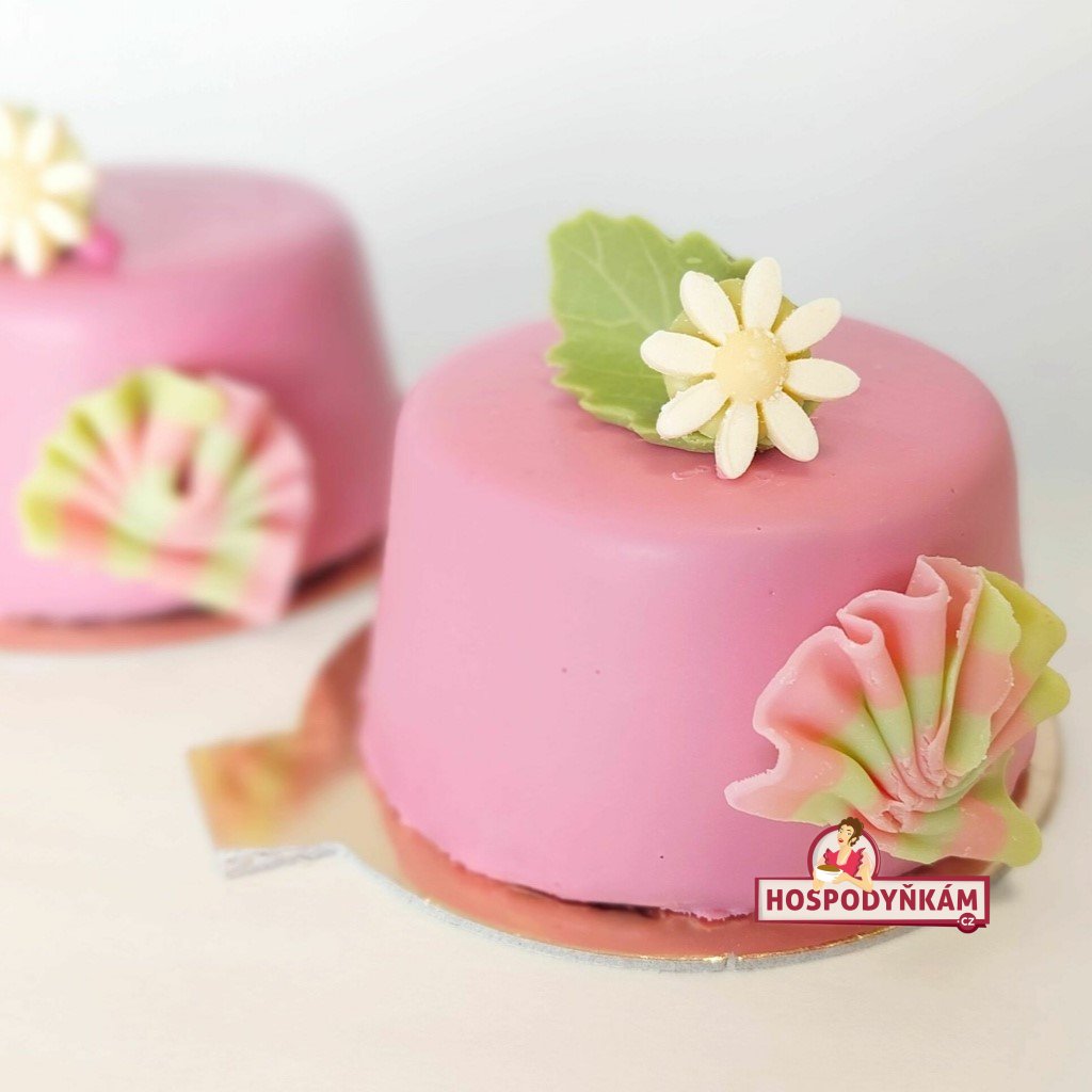 Elastická světle růžová poleva s malinovou příchutí je vhodná ke zdobení cukrářských výrobků.