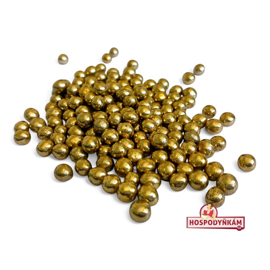 Metalické čokoládové křupavé perličky ve zlaté barvě jsou elegantní a efektní dekorací na dorty, cupcakes, zákusky i další sladké dobroty. V balení najdete přibližně 185 ks perliček o průměru 7 mm. Lehoučké perličky se díky své struktuře neboří do krému, dobře na něm drží a jsou na skus příjemně měkké. Metalický zlatý lesk dodá každému dezertu slavnostní a luxusní vzhled.