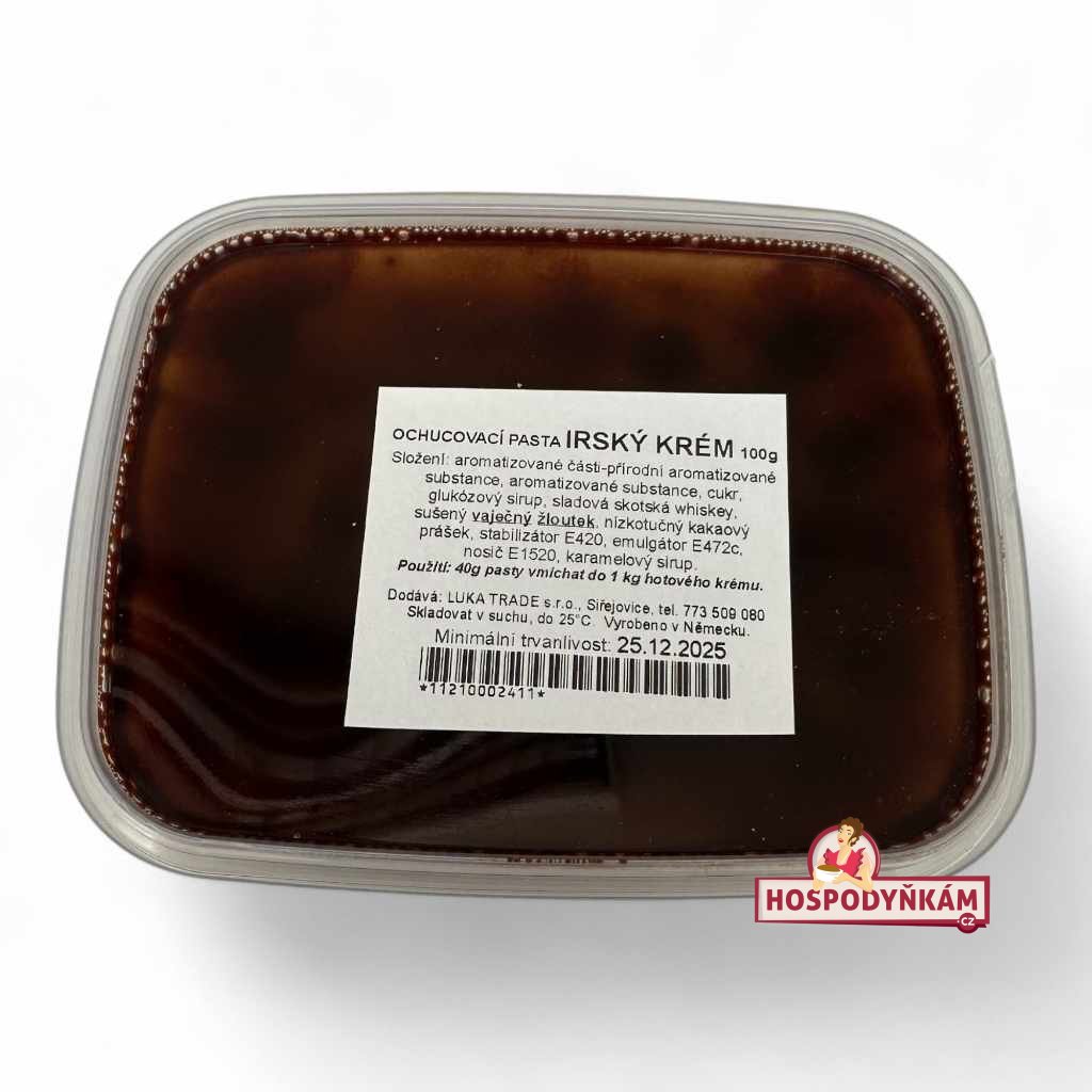 Ochucovací pasta Irský krém je skvělým pomocníkem pro všechny, kteří chtějí svým dezertům, krémům nebo těstům dodat originální a výraznou chuť inspirovanou oblíbeným irským likérem. Tato pasta je na přírodní bázi a díky své pastovité konzistenci se velmi snadno vmíchává do různých potravinářských hmot – od šlehačky přes pudinky až po těsta na dorty či dezerty.