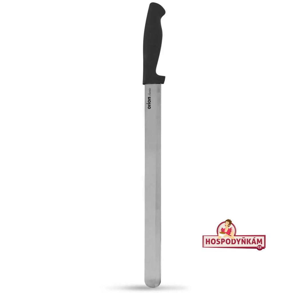 Tento profesionální dortový nůž Orion je navržen tak, aby usnadnil všechny aspekty přípravy dortů. Díky své dlouhé a ostré čepeli umožňuje snadné krájení korpusů, roztírání krémů a přesné tvarování boků dortu.