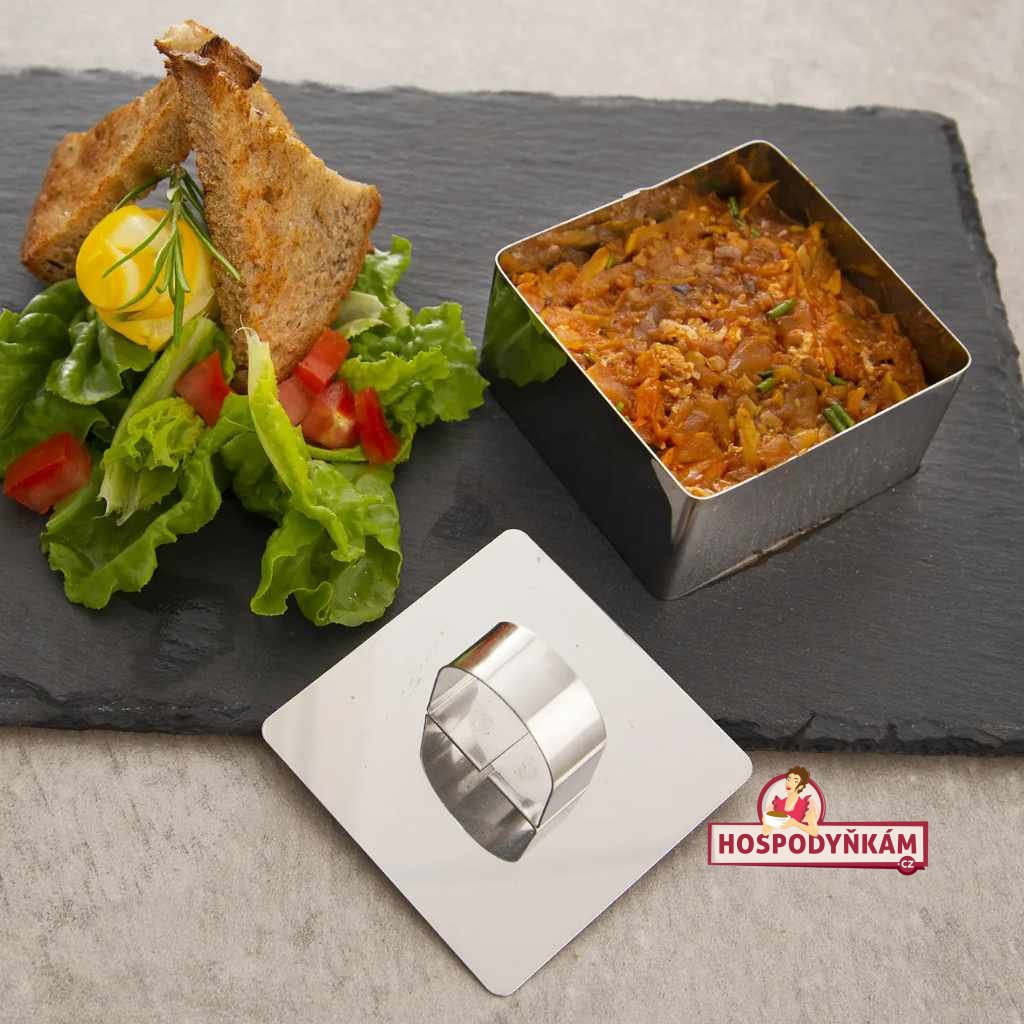 Chcete svým dezertům nebo přílohám dodat profesionální vzhled? S hranatým nerezovým tvořítkem o velikosti 8x8 cm, které je určeno na semifreda, vykouzlíte doma během chvilky efektní zákusky, dortíky i slané pochoutky. Tato čtvercová forma je ideální na vykrajování menších dezertů z upečeného korpusu, vrstvených zákusků s čokoládou, ovocnými přelivy nebo krémem. Skvěle ale poslouží i při servírování moderních slaných pokrmů – například netradičních toastů, bramborových příloh nebo rizota. Součástí formy je píst s držadlem, který usnadňuje vyjmutí hotového pokrmu a zaručí, že výsledek bude vypadat opravdu dokonale.