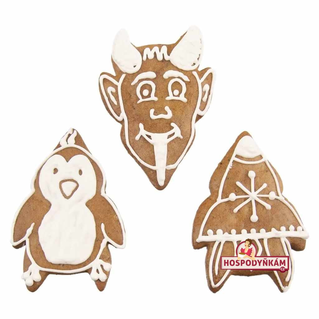 Vykrojte si originální čertí hlavy a zapojte do pečení i děti – vykrajování je bude bavit! Vykrajovačku lze využít i na další motivy (raketa, tučňák) dle vaší fantazie a zdobení.