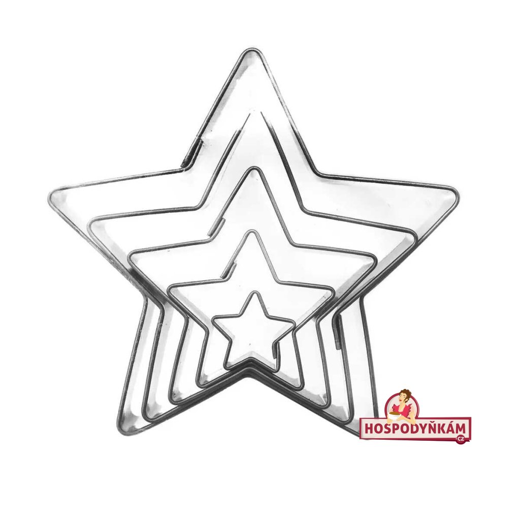 Tato cukrářská sada pěti nerezových vykrajovátek ve tvaru hvězdy je ideální pro veselé vánoční pečení, sušenky, linecké cukroví, perníčky i dekorativní marcipánové ozdoby. Díky různým velikostem můžete tvořit vrstvené hvězdné dorty, perníkové hvězdy nebo originální skládné dekorace.