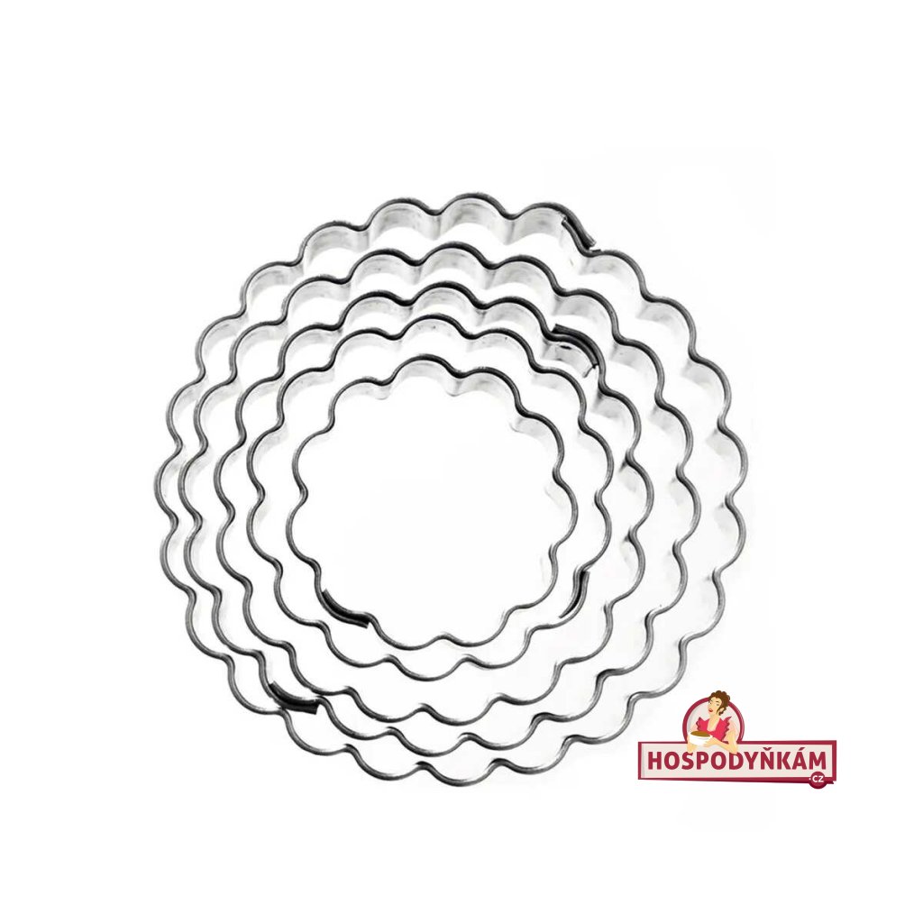 Pět nerezových vykrajovátek ve tvaru koleček s jemně vlnkovaným okrajem slouží k vykrajování vzorů při pečení sušenek, lineckého cukroví, perníčků nebo pro vykrajování tvarů z marcipánu a fondánu. Vlnkovaný okraj dodá vašemu pečivu elegantní vzhled a díky různým velikostem můžete snadno tvořit i vícepatrové nebo slepované dobroty.