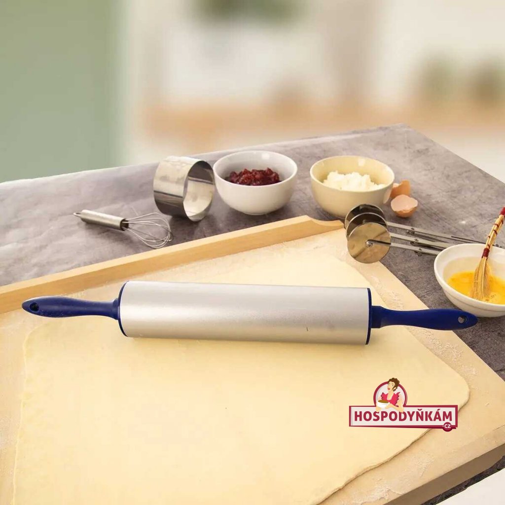 Praktický pomocník do kuchyně, kovový váleček s nastavitelnou výškou s nepřilnavým povrchem pro snadné rozvalování těsta bez lepení a trhání. Díky zarážkám můžeme nastavit tloušťku těsta podle vlastní potřeby.