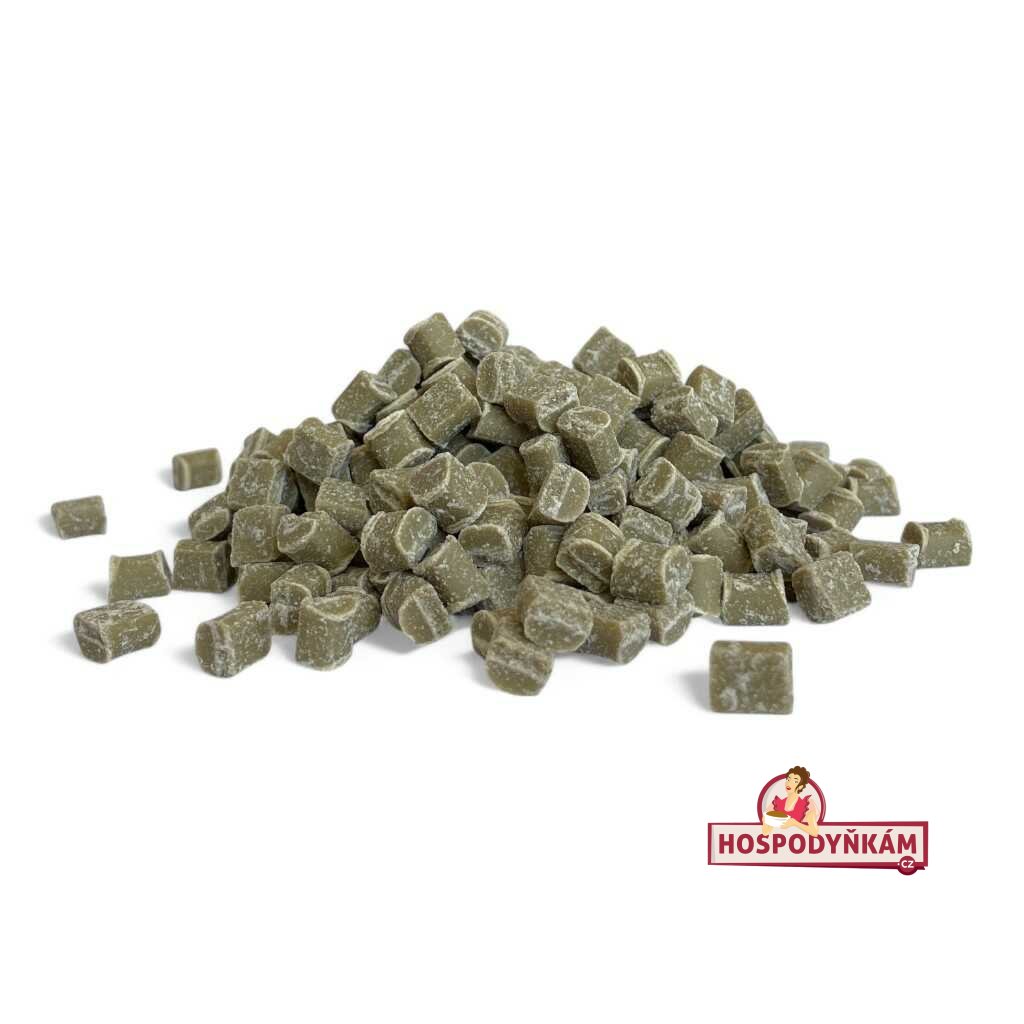 cukr, kakaové máslo, 14% PISTÁCIOVÁ pasta, sušené odstředěné MLÉKO, SYROVÁTKA, emulgátor slunečnicový lecitin E322, aroma, barvivo E141(ii).