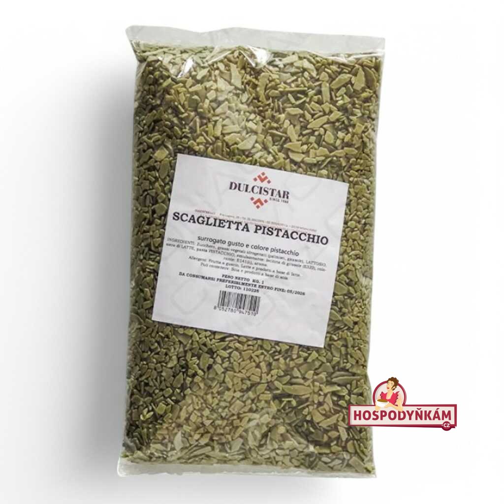 Pistáciové šupiny jsou vynikající cukrářskou dekorací, která dodá dortům a dezertům atraktivní vzhled i jemnou pistáciovou chuť. Jsou vyrobeny z polevy se zelenou - pistáciovou barvou a vynikající přilnavostí, což zajišťuje, že na povrchu cukrářských výrobků dobře drží a nevytváří nežádoucí opadávání.